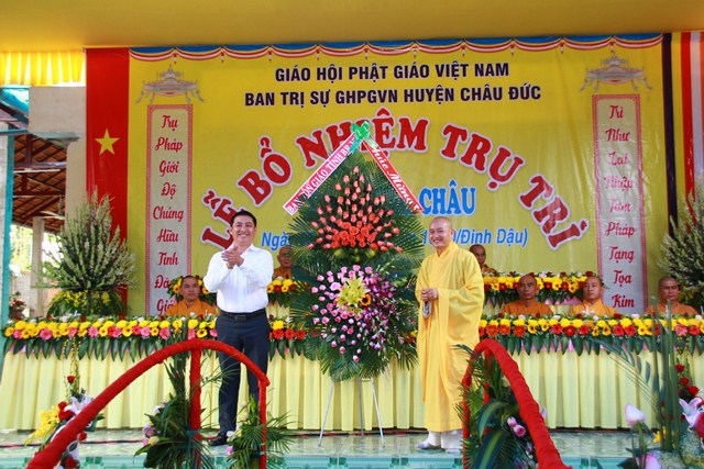 Quang lâm chứng minh và tham dự buổi Lễ có HT Thích Như Thị Phó trưởng ban Thường trực, Đại đức Thích Thiện Thông Phó thư ký kiêm Chánh Văn phòng, Đại đức Thích Trí Định Phó thư ký – Chánh Văn phòng Trưởng ban Thông tin – Truyền Thông GHPGVN tỉnh Bà Rịa Vũng Tàu, HT Thích Trừng Diệu Chứng minh Ban Trị sự, Đại đức Thích Chiếu Hiền Trưởng Ban Trị sự GHPGVN huyện Châu Đức cùng Chư tôn đức trong tông môn pháp phái và Ban Trị sự GHPGVN huyện Châu Đức.