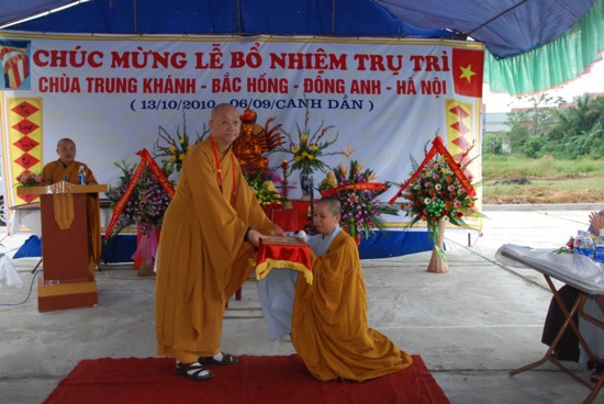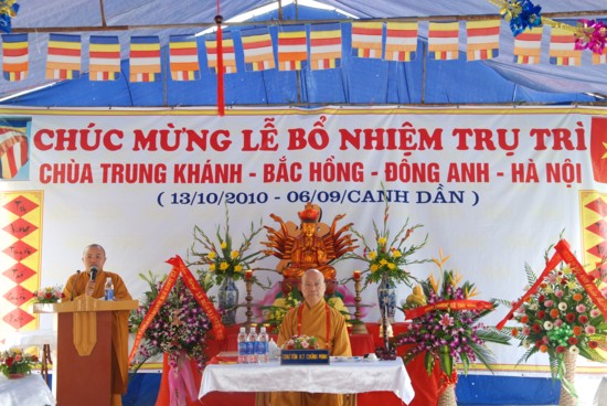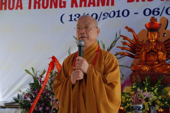 Thượng toạ đã hoan hỷ vì Chùa Chung Khánh hôm nay đã có trụ trì chính thức, đây là niềm hân hoan cho toàn thể Phật tử địa phương, đây là trách nhiệm rất lớn của tân trụ trì sẽ là người mở mang kiến thức, trí tuệ cho nhân dân, hành đạo đúng chính pháp, mang đến nhiều lợi ích cho quần sinh đúng với tinh thần “Trụ pháp đương gia – Trì Như Lai tạng”