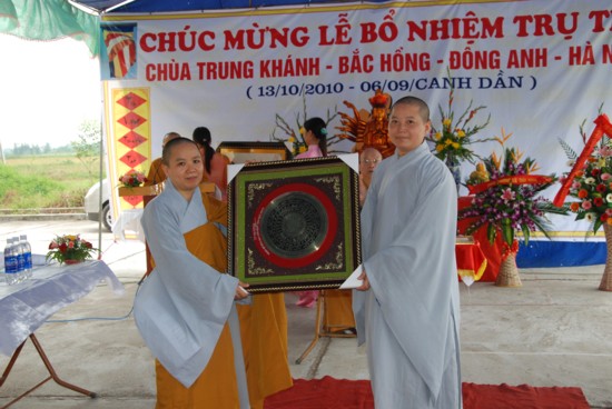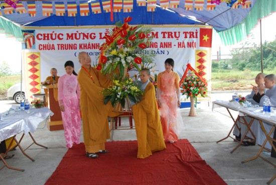 Cuối buổi lễ Sư thầy tân trụ trì đón nhận những lẵng hoa của Chư tôn đức và các vị đại biểu trao tặng. Buổi lễ đã kết thúc trong không khí thắm tình đạo vị.