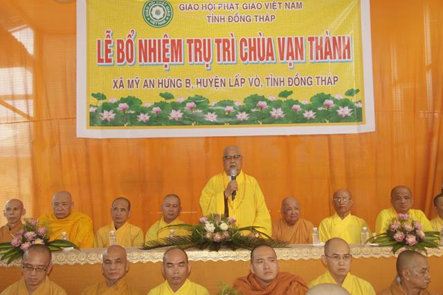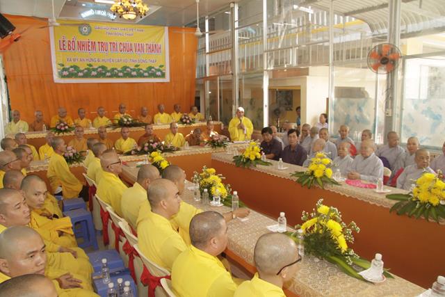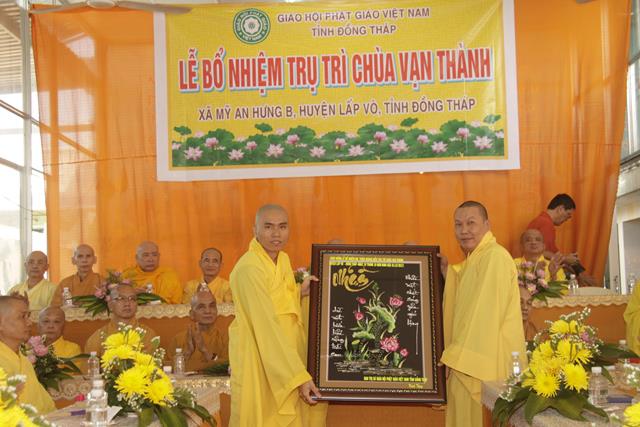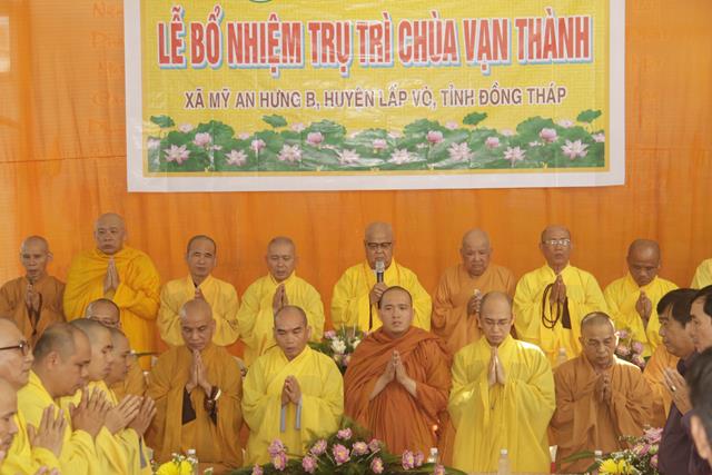 Đại đức Thích Chơn Tâm, Chánh thư ký Ban trị sự GHPGVN tỉnh Đồng Tháp đọc quyết định trụ trì chùa Vạn Thành cho Đại Đức Thích Hoằng Hiền. TT. Thích Thiện Năng Phó Ban Thường trực Ban BTS.GHPGVN tỉnh Đồng Tháp trao quyết định đến tân trụ trì .