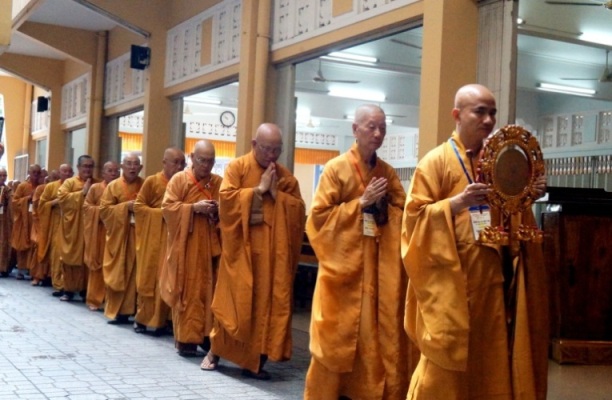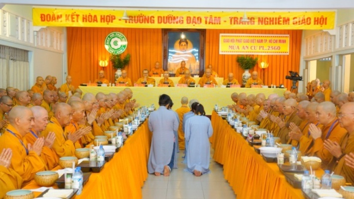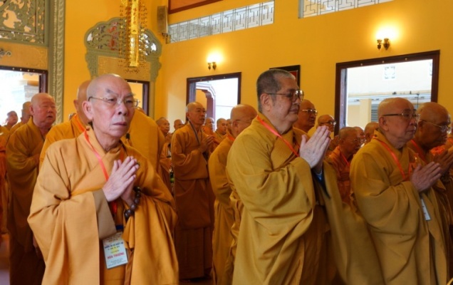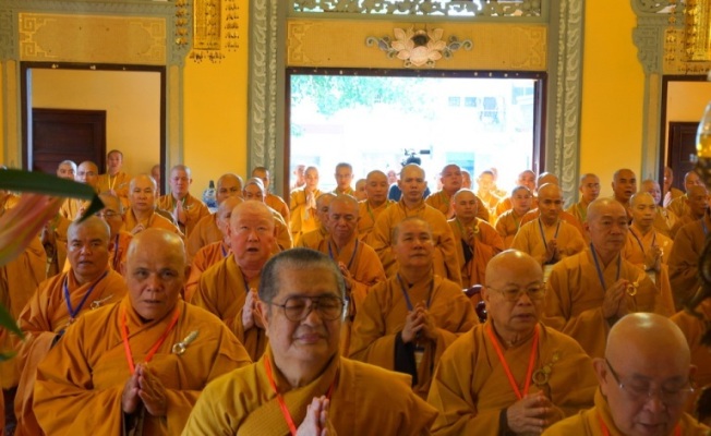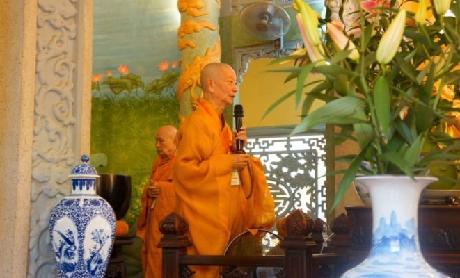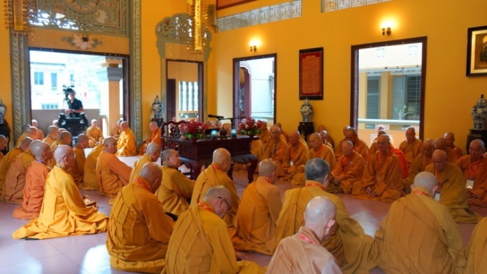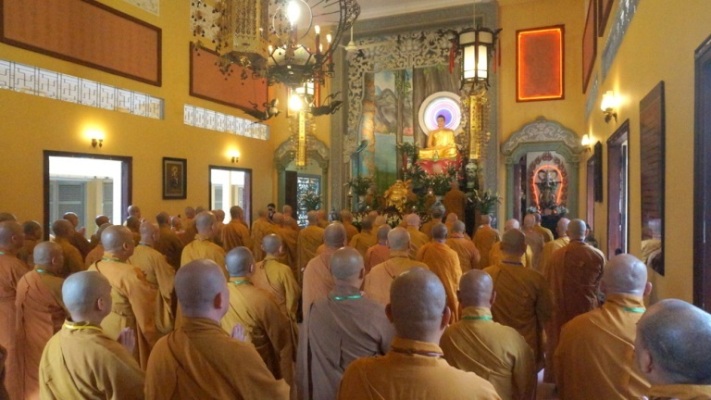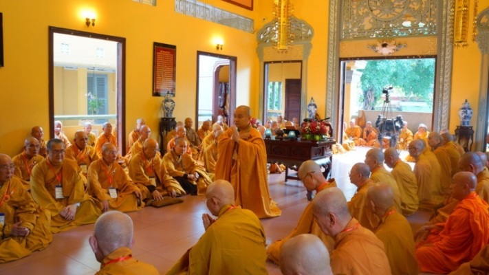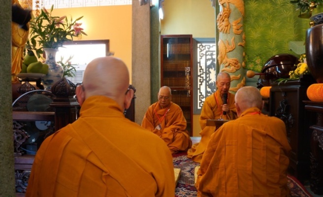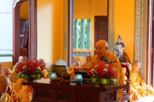 ĐĐ.Thích Trung Nguyện – Phó Thư Ký kiêm Phó văn phòng BTS GHPGVN TP.HCM đai diện Ban thư ký BTS GHPGVN TP.HCM thông kiểm số chúng. Tiếp đó, HT.Thích Minh Thông – Phó ban kiêm Trưởng BTS GHPGVN TP.HCM đã trùng tuyên Tỳ kheo giới, Bồ tát giới.