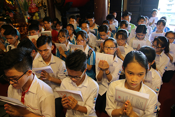 Sau thời khoá tụng kinh cầu nguyện mùa thi, Sư cô trụ trì Thích Đồng Hoà đã chia sẻ mục đích buổi lễ là trợ duyên, giúp các em trang bị thêm một số kỹ năng kiến thức, giải đáp những thắc mắc trước khi bước vào mùa thi, tạo thêm lòng tự tin để đạt được kết quả cao nhất nhờ những kinh nghiệm trước trong và sau mùa thi cử.