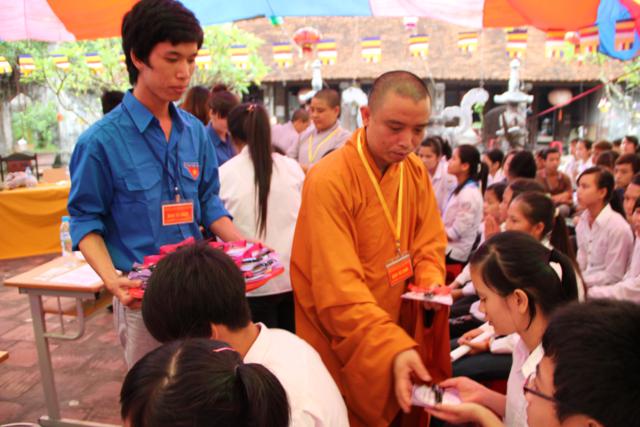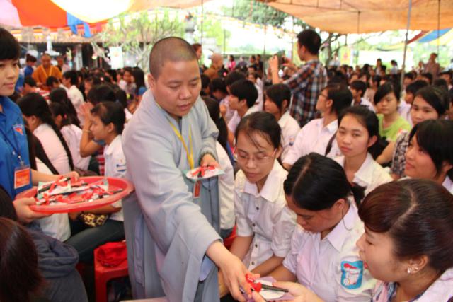 Buổi lễ tư vấn ngoài nghi thức dâng hương bạch Phật nguyện cầu mười phương chư Phật chư Bồ Tát gia hộ về sức khỏe, tinh thần được an lạc trong mùa thi cử, không khí của chùa Chuông hôm nay thật sôi nổi náo nhiệt “trẻ trung” hơn rất nhiều khi có sự tham gia của hơn 1.000 em là học sinh, sinh viên. Sư cô Đàm Mơ trưởng ban Hướng dẫn Phật tử Tỉnh Hưng Yên – Trưởng Ban tổ chức, đọc diễn văn khai mạc và nêu ý nghĩa buổi lễ, với tinh thần “ Phụng sự chúng sinh là thiết thực cúng dàng chư Phật” mặc dù thời tiết có mưa nhỏ nhưng sự nhiệt tình của các chư Tăng và quý Thầy Cô những gương mặt các em đã phần nào làm vơi đi sự mệt mỏi, điều đó cho thấy hình ảnh  Đạo Phật đang trở nên thân thiện gần gũi và là nơi gửi gắm niềm tin cho hệ trẻ.