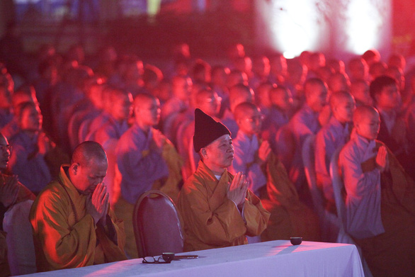 Đúng 20h, trong thời khắc thiêng liêng, xúc động, toàn thể chư tăng ni đã tụng kinh cầu siêu, tưởng niệm 60 thanh niên xung phong đại đội 915 và các liệt sĩ đã hi sinh vì sự nghiệp giải phóng dân tộc.