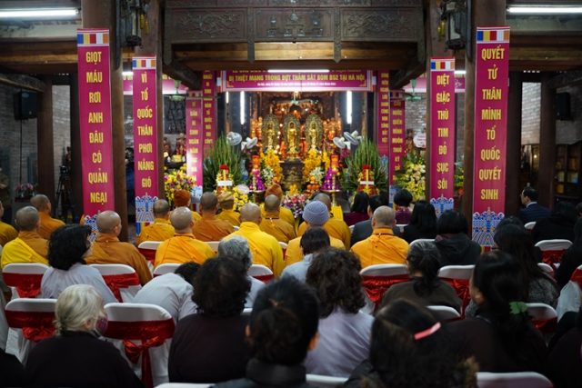 Trong không khí trang nghiêm, Hòa thượng Thích Thanh Chính đã đọc văn tưởng niệm các anh hùng liệt sĩ hy sinh anh dũng để bảo vệ Tổ quốc Việt Nam, các nạn nhân vô tội bị thiệt mạng trong đợt thảm sát bom B52 tại Hà Nội.