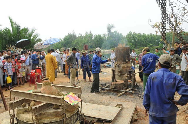 Đại hồng chung nặng hơn 500kg, đường kính 90cm, chiều cao 1,7m với kinh phí 300 triệu đồng, do nhóm nghệ nhân đến từ cơ sở đúc đồng Nguyễn văn Tuệ (TP.Huế) chế tác.