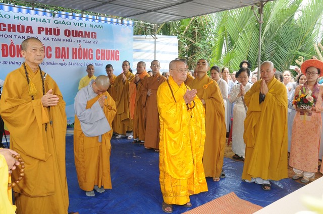 Quang lâm chứng minh chú nguyện buổi lễ có HT.Thích Thiện Duyên, Thành viên HĐCM, Phó Chủ tịch HĐTS, Trưởng BTS GHPGVN tỉnh Quảng Nam; HT.Thích Thiện Thành, UV HĐTS, Phó BTS PG tỉnh; ĐĐ.Thích Tịnh Đức, Phó BTS PG tỉnh, Trưởng BTS PG TP.Tam Kỳ; cùng chư tôn đức Tăng, Ni trụ trì các tự viện trong và đông đảo phật tử ngoài thành phố tham dự.