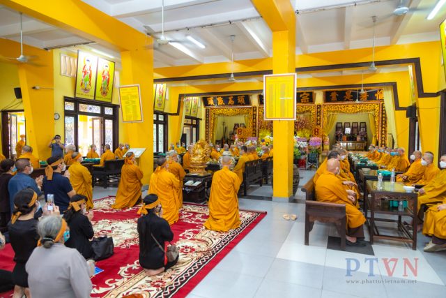 Trước đó tại Phật điện, chư Tăng tổ đình Vĩnh Nghiêm và môn nhân pháp quyến đã có thời kinh tưởng niệm và cúng ngọ.