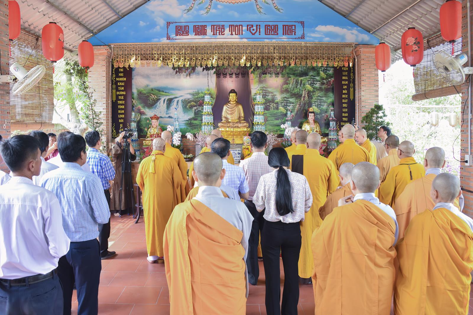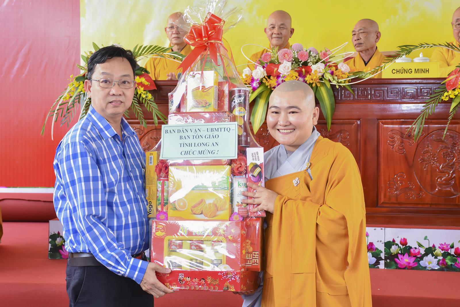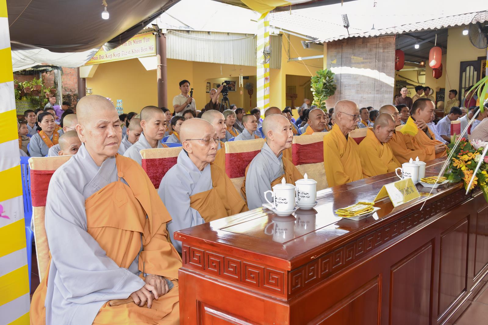 Quang lâm chứng minh có: Trưởng lão Hòa thượng Thích Thiện Huệ – Thành viên HĐCM TƯ, Chứng minh BTS GHPGVN tỉnh Long An; HT. Thích Minh Thiện – UV HĐTS, Phó ban Hoằng pháp TW, Trưởng BTS GHPGVN tỉnh Long An; HT Thích Thiện Thái – Chứng Minh BTS quận Bình Tân; TT. Thích Quảng Tâm – UV HĐTS, Phó ban Từ thiện Xã hội TW, Phó Trưởng ban Thường trực BTS GHPGVN tỉnh; HT. Thích Tắc Phi – Phó BTS GHPGVN tỉnh; HT. Thích Thiện Minh – Chứng minh BTS GHPGVN huyện Hóc Môn; TT. thích Phước Triều – UV HĐTS, Trợ lý Tổng thư ký GHPGVN phụ trách phía Nam; TT Thích Lệ Tâm – Phó Ban Thường trực BTS GHPGVN huyện Hóc Môn; ĐĐ. Thích Phước Huệ – Phó BTS GHPGVN tỉnh Đồng Tháp; ĐĐ. Thích Lệ Duyên – Phó ban kiêm Chánh Thư ký BTS GHPGVN tỉnh Long An, Trưởng BTS GHPGVN huyện Đức Hoà; ĐĐ. Thích Thiện Danh – Phó thư ký, Chánh văn phòng BTS GHPGVN tỉnh; TT. Thích Phước Cường – Trưởng Ban nghi lễ GHPGVN tỉnh. TT. Thích Nhuận Thành – Trưởng ban Kinh tế Tài chính GHPGVN tỉnh, Phó BTS GHPGVN huyện Đức Hòa; TT Thích Minh Trung – UV BTS GHPGVN tỉnh, Phó Ban thường trực BTS GHPGVN huyện Đức Hoà; TT. Thích Chơn Trí – Phó BTS, Chứng minh Ban nghi lễ GHPGVN huyện Hóc Môn.  Ni Trưởng TN. Tuệ Đăng – Phó BTS, Trưởng Ban Ni giới GHPGVN tỉnh Long An; Ni trưởng TN. Diệu Nhàn – Phó ban Ni giới PG tỉnh, Trưởng phân Ban Ni giới PG huyện Đức Hoà; Chư tôn đức Ban Thường trực BTS GHPGVN tỉnh Long An, huyện Đức Hòa, huyện Hóc Môn; Chư tôn đức Tăng Ni trụ trì các tự viện; Chư tôn đức Tăng Ni đồng về tham dự.