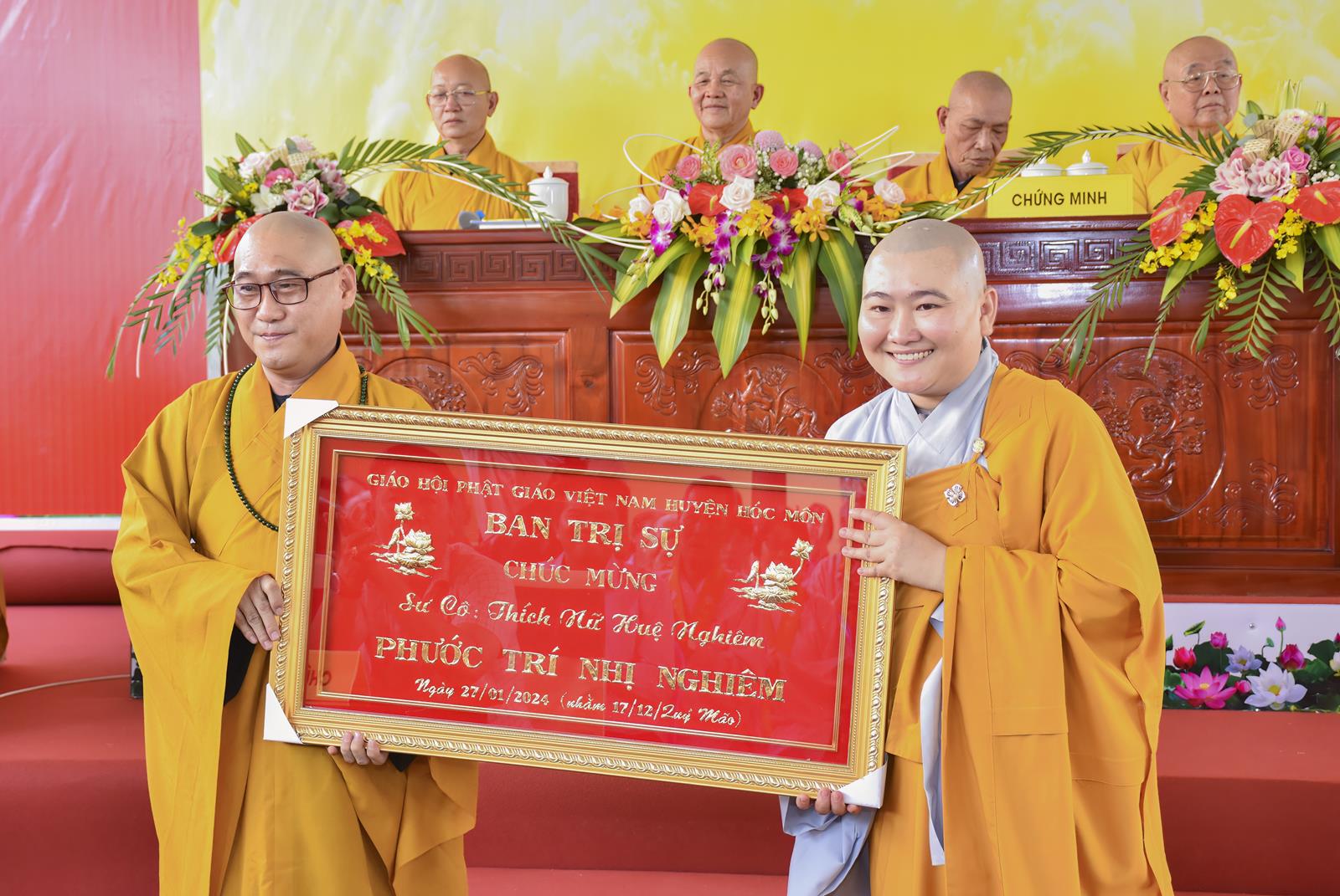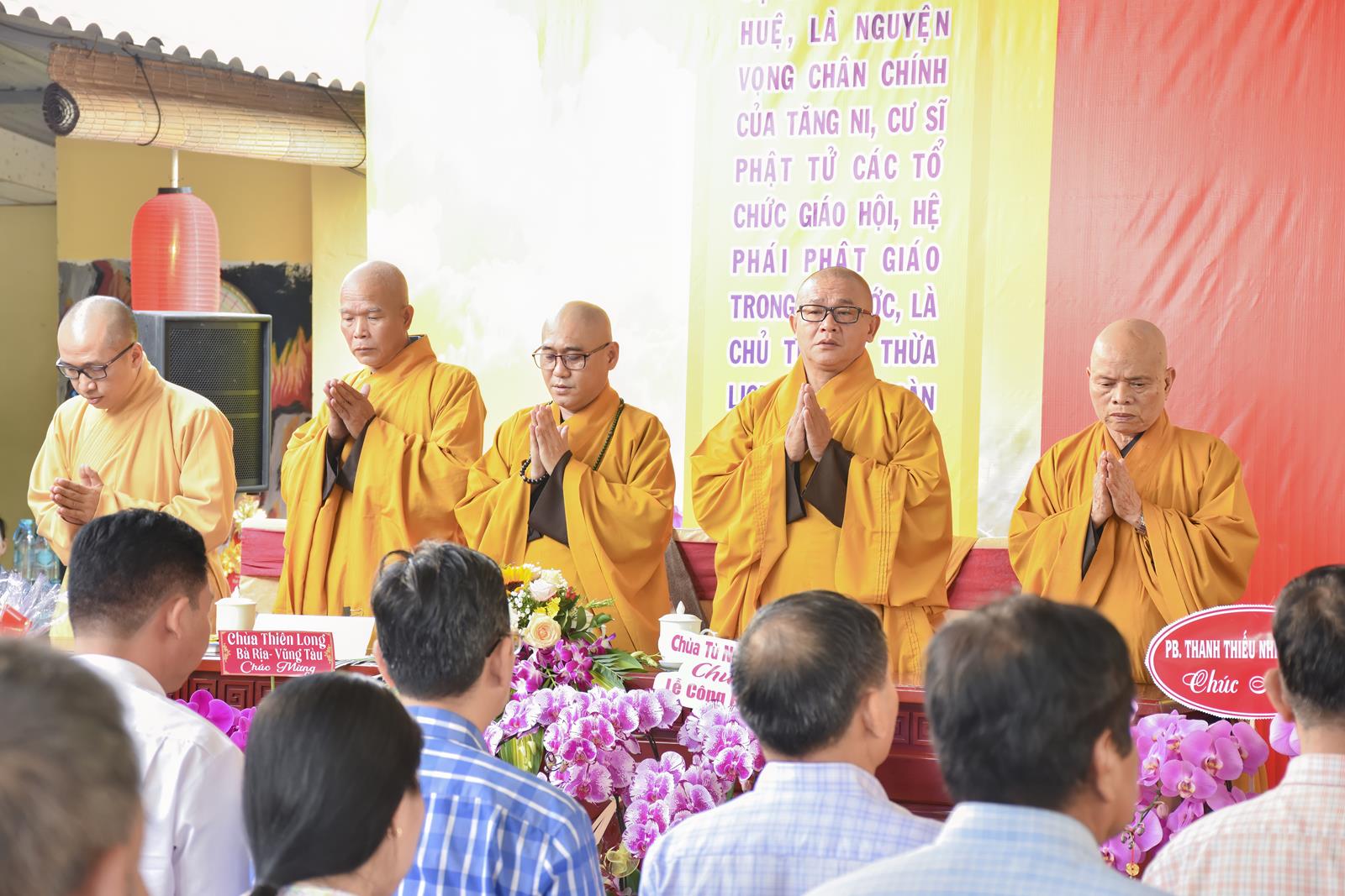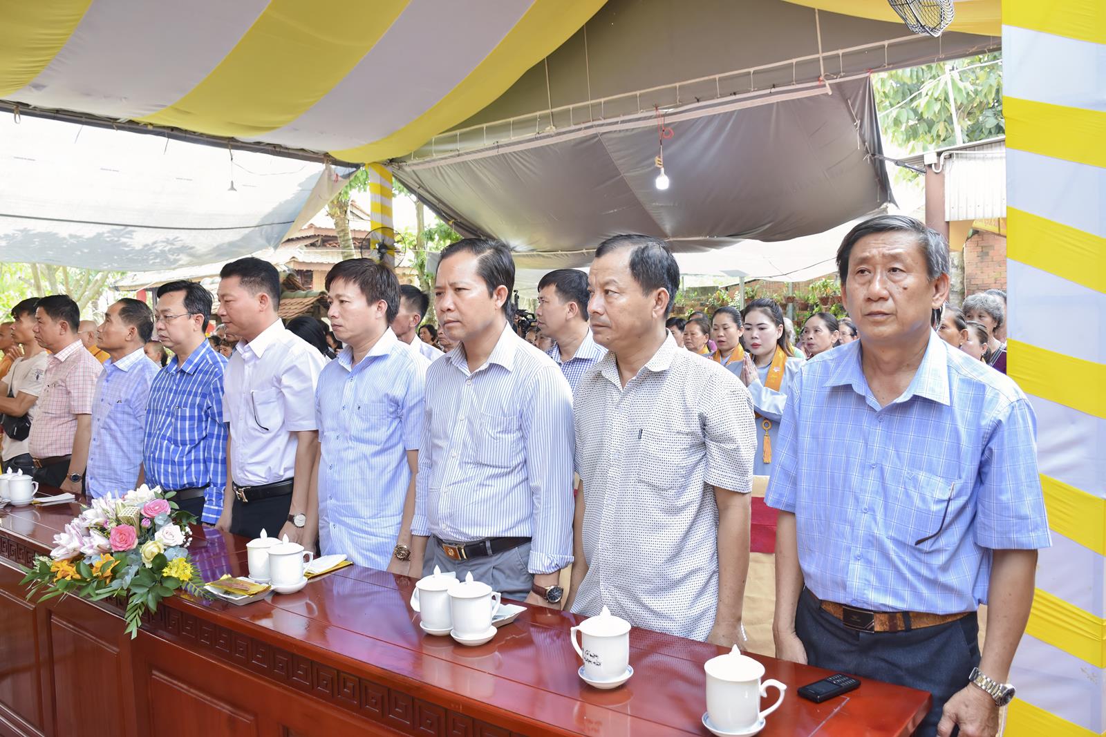 Quang lâm chứng minh có: Trưởng lão Hòa thượng Thích Thiện Huệ – Thành viên HĐCM TƯ, Chứng minh BTS GHPGVN tỉnh Long An; HT. Thích Minh Thiện – UV HĐTS, Phó ban Hoằng pháp TW, Trưởng BTS GHPGVN tỉnh Long An; HT Thích Thiện Thái – Chứng Minh BTS quận Bình Tân; TT. Thích Quảng Tâm – UV HĐTS, Phó ban Từ thiện Xã hội TW, Phó Trưởng ban Thường trực BTS GHPGVN tỉnh; HT. Thích Tắc Phi – Phó BTS GHPGVN tỉnh; HT. Thích Thiện Minh – Chứng minh BTS GHPGVN huyện Hóc Môn; TT. thích Phước Triều – UV HĐTS, Trợ lý Tổng thư ký GHPGVN phụ trách phía Nam; TT Thích Lệ Tâm – Phó Ban Thường trực BTS GHPGVN huyện Hóc Môn; ĐĐ. Thích Phước Huệ – Phó BTS GHPGVN tỉnh Đồng Tháp; ĐĐ. Thích Lệ Duyên – Phó ban kiêm Chánh Thư ký BTS GHPGVN tỉnh Long An, Trưởng BTS GHPGVN huyện Đức Hoà; ĐĐ. Thích Thiện Danh – Phó thư ký, Chánh văn phòng BTS GHPGVN tỉnh; TT. Thích Phước Cường – Trưởng Ban nghi lễ GHPGVN tỉnh. TT. Thích Nhuận Thành – Trưởng ban Kinh tế Tài chính GHPGVN tỉnh, Phó BTS GHPGVN huyện Đức Hòa; TT Thích Minh Trung – UV BTS GHPGVN tỉnh, Phó Ban thường trực BTS GHPGVN huyện Đức Hoà; TT. Thích Chơn Trí – Phó BTS, Chứng minh Ban nghi lễ GHPGVN huyện Hóc Môn.  Ni Trưởng TN. Tuệ Đăng – Phó BTS, Trưởng Ban Ni giới GHPGVN tỉnh Long An; Ni trưởng TN. Diệu Nhàn – Phó ban Ni giới PG tỉnh, Trưởng phân Ban Ni giới PG huyện Đức Hoà; Chư tôn đức Ban Thường trực BTS GHPGVN tỉnh Long An, huyện Đức Hòa, huyện Hóc Môn; Chư tôn đức Tăng Ni trụ trì các tự viện; Chư tôn đức Tăng Ni đồng về tham dự.