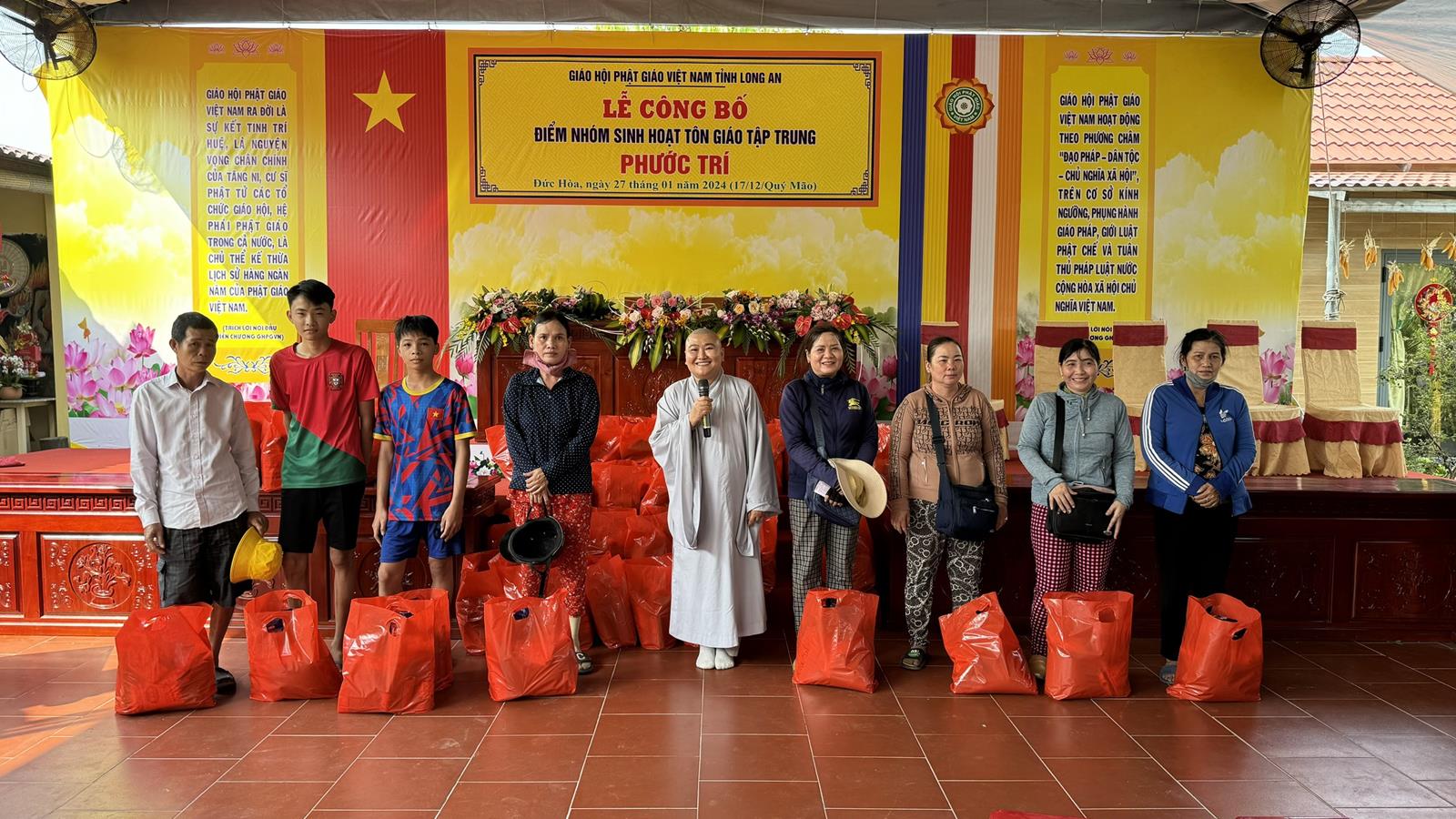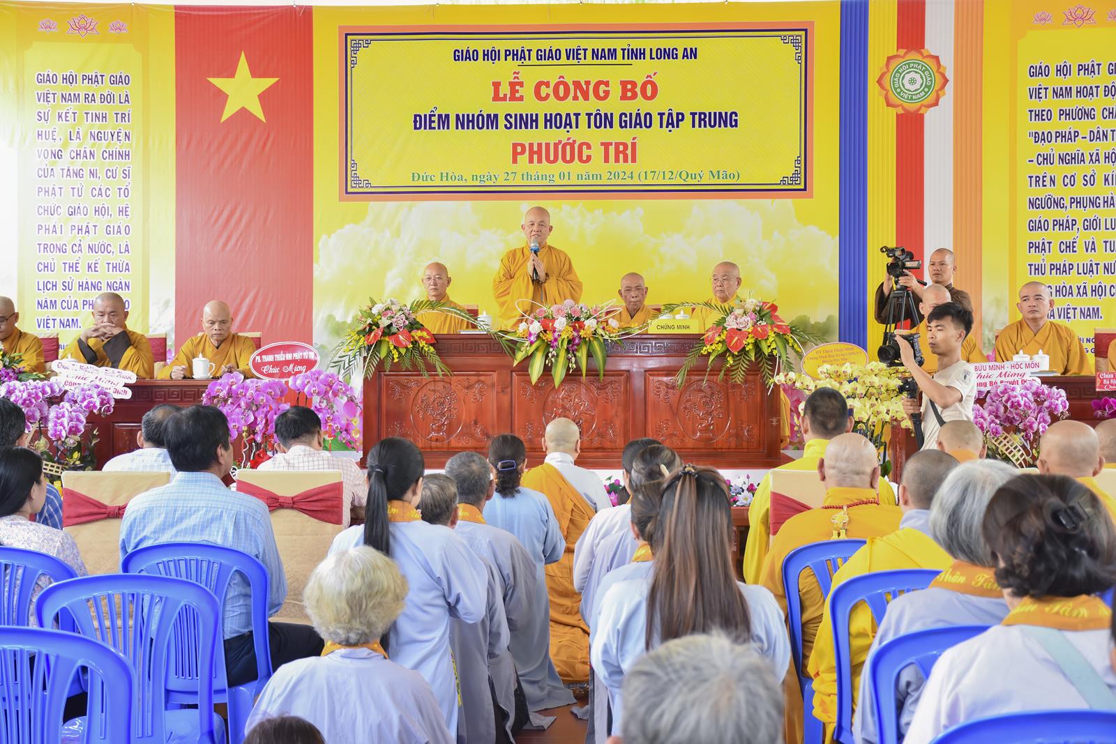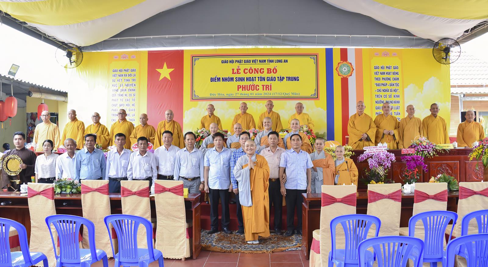 Sáng ngày 27/01/2024 nhằm ngày 17/12/ Quý Mão, Ban Trị sự GHPGVN tỉnh Long An phối hợp BTS GHPGVN huyện Đức Hòa và lãnh đạo chính quyền các cấp long trọng tổ chức Lễ công bố điểm nhóm sinh hoạt tôn giáo tập trung Phước Trí thuộc ấp 2, xã Đức Hoà Đông, huyện Đức Hoà, tỉnh Long An.