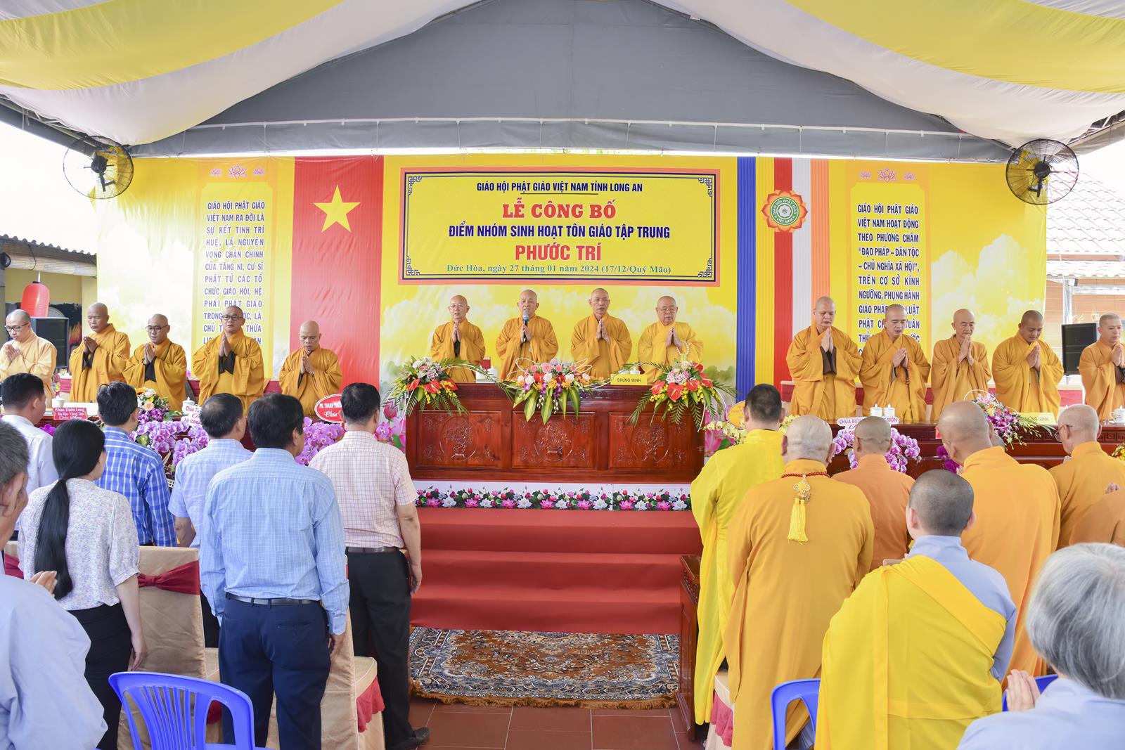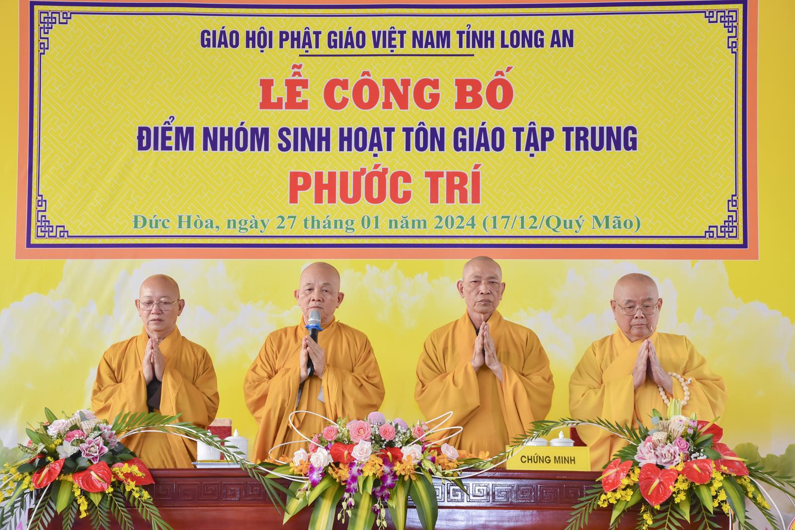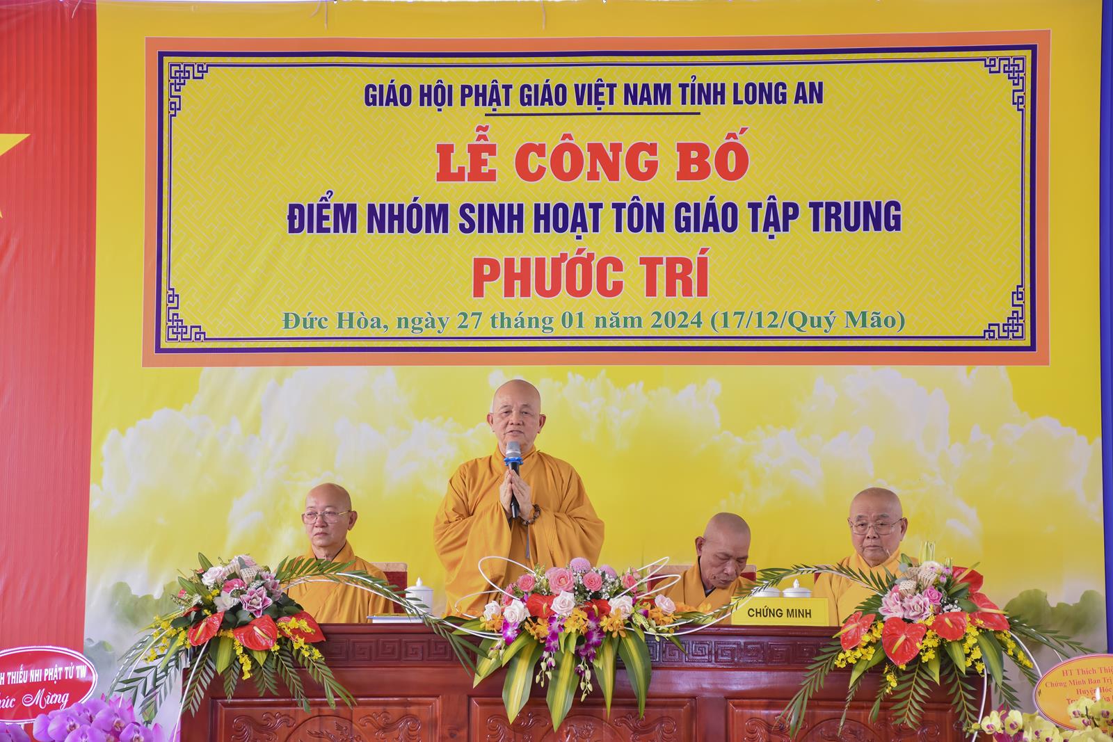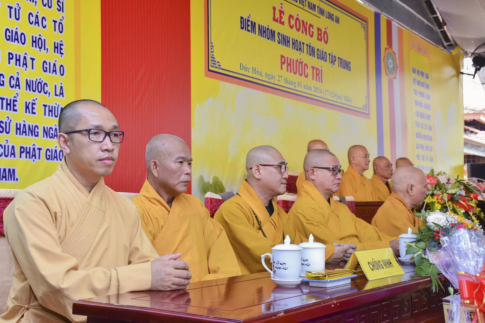 Sáng ngày 27/01/2024 nhằm ngày 17/12/ Quý Mão, Ban Trị sự GHPGVN tỉnh Long An phối hợp BTS GHPGVN huyện Đức Hòa và lãnh đạo chính quyền các cấp long trọng tổ chức Lễ công bố điểm nhóm sinh hoạt tôn giáo tập trung Phước Trí thuộc ấp 2, xã Đức Hoà Đông, huyện Đức Hoà, tỉnh Long An.