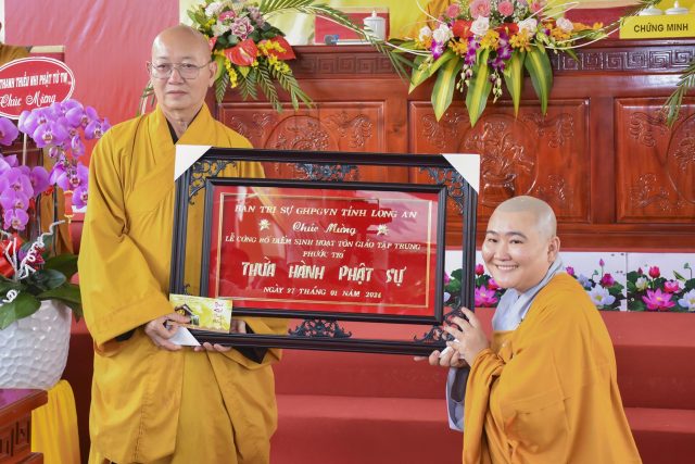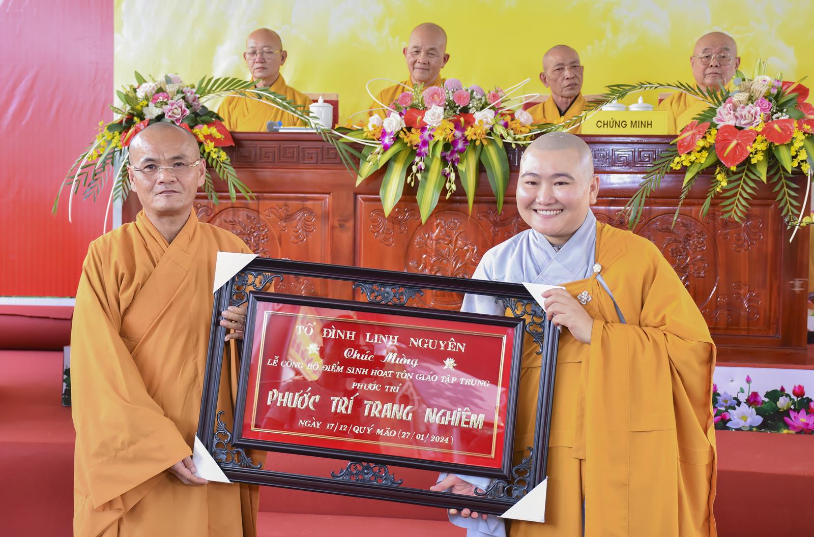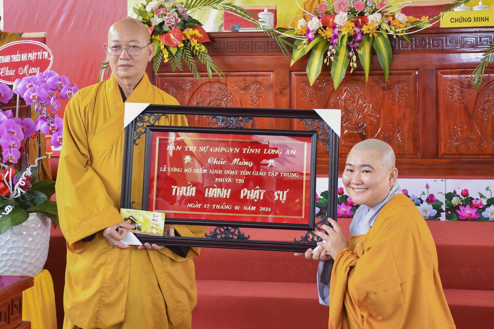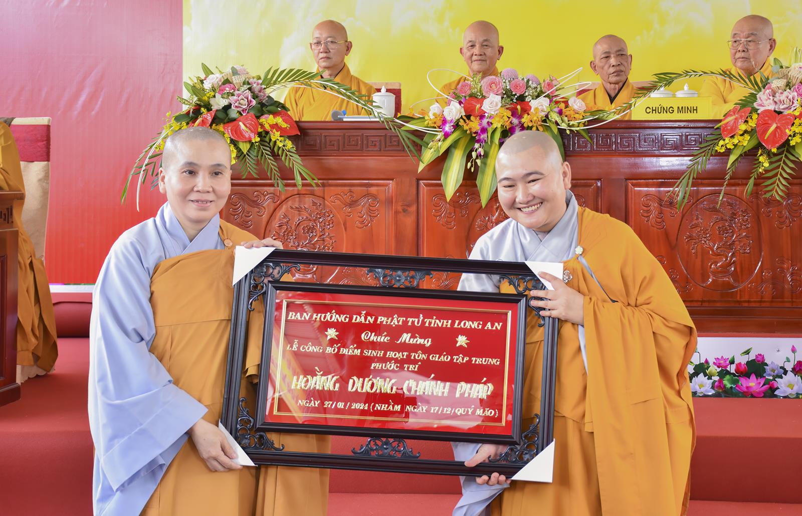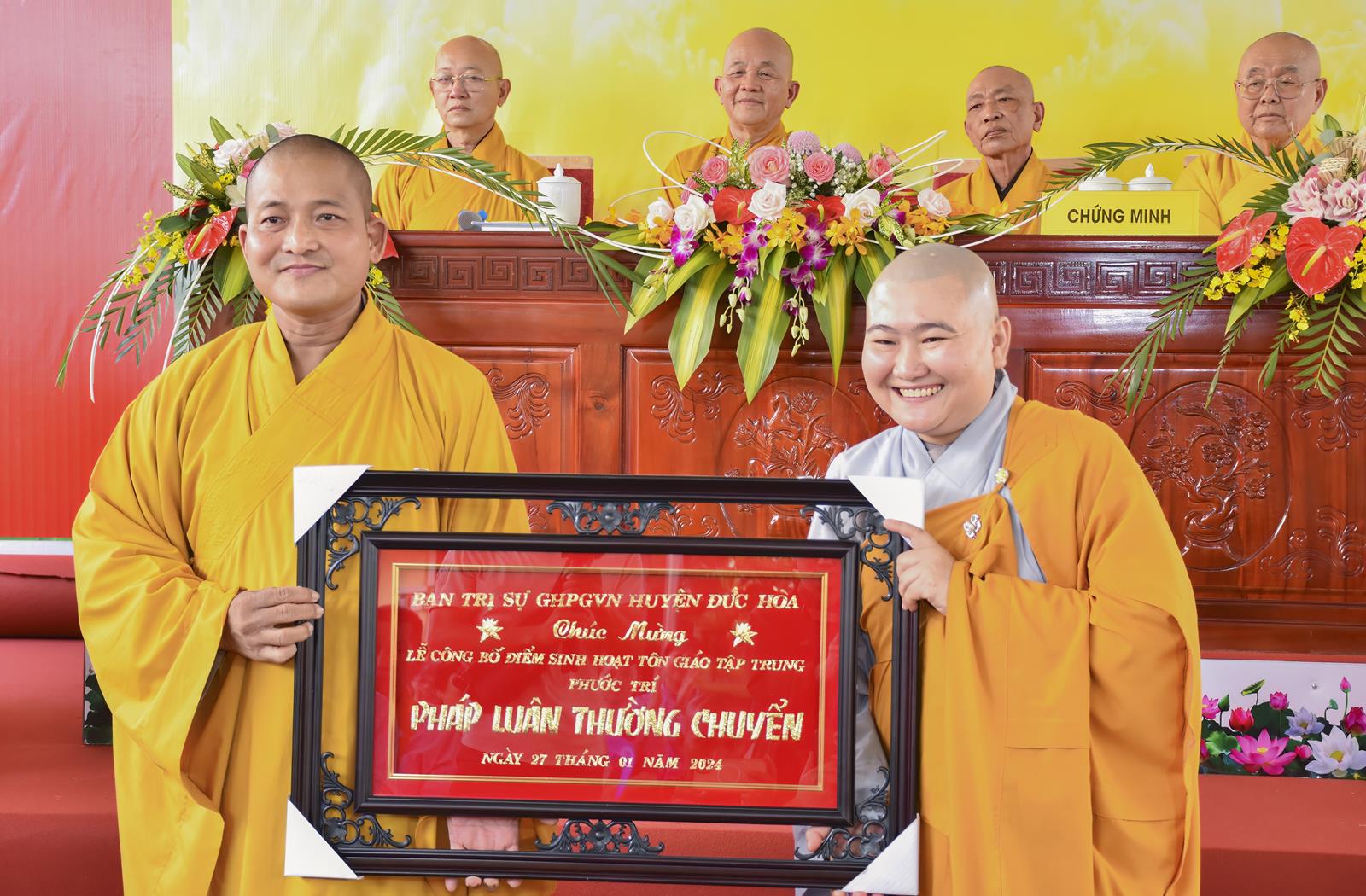 Được sự cho phép cho của chư Tôn đức Thường trực Ban Trị sự GHPGVN tỉnh Long An, Đại đức Thích Lệ Duyên – Phó ban kiêm Chánh Thư ký Ban Trị sự GHPGVN tỉnh Long An, Trưởng ban Trị sự GHPGVN huyện Đức Hòa thông qua giấy chứng nhận đăng ký sinh hoạt tôn giáo tập trung Phước Trí theo quyết định số 71/GCN-UBND do Chủ tịch UBND xã Đức Hoà Đông – bà Lê Thị Ngọc Bích ấn ký ngày 15/01/2024 do Sư cô Thích nữ Huệ Nghiêm ( thế danh Nguyễn Thị Minh Trang) sinh năm 1982, hộ khẩu thường trú: ấp 2, xã Đức Hoà Đông, huyện Đức Hoà, tỉnh Long An là người đại diện.