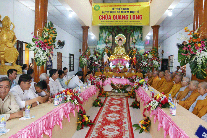ĐĐ.Thích Ngọc Trí – Phó Văn phòng BTS GHPGVN tỉnh Tiền Giang thừa ủy nhiệm của chư Tôn đức Thường trực công bố quyết định do TT.Thích Quảng Lộc – Trưởng BTS GHPGVN tỉnh Tiền Giang ấn ký cho ĐĐ.Thích Như Huệ làm Trụ trì chùa Quang Long.