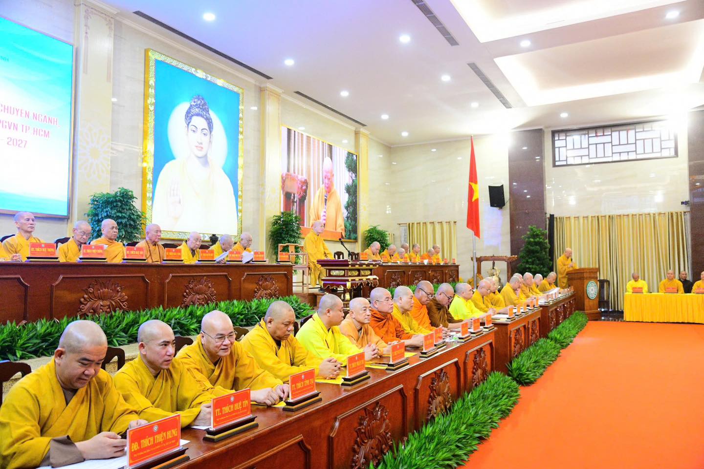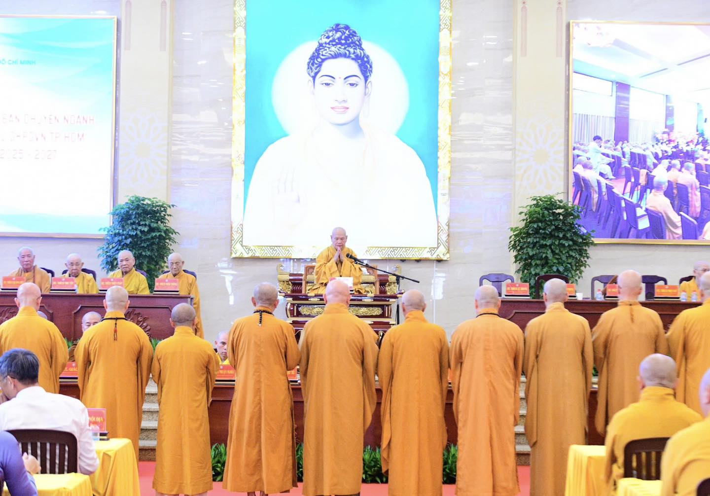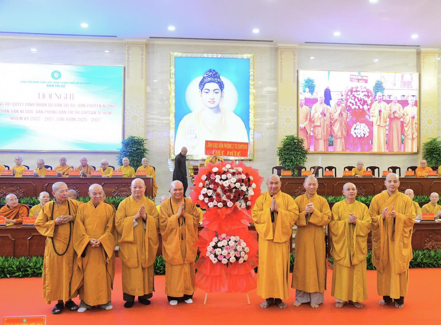 Tham dự phiên họp trang nghiêm có chư tôn đức Hội đồng Chứng minh, Hội đồng Trị sự, đại diện các ban, viện Trung ương GHPGVN, cùng chư tôn đức Ban Trị sự Phật giáo TP. Hồ Chí Minh.