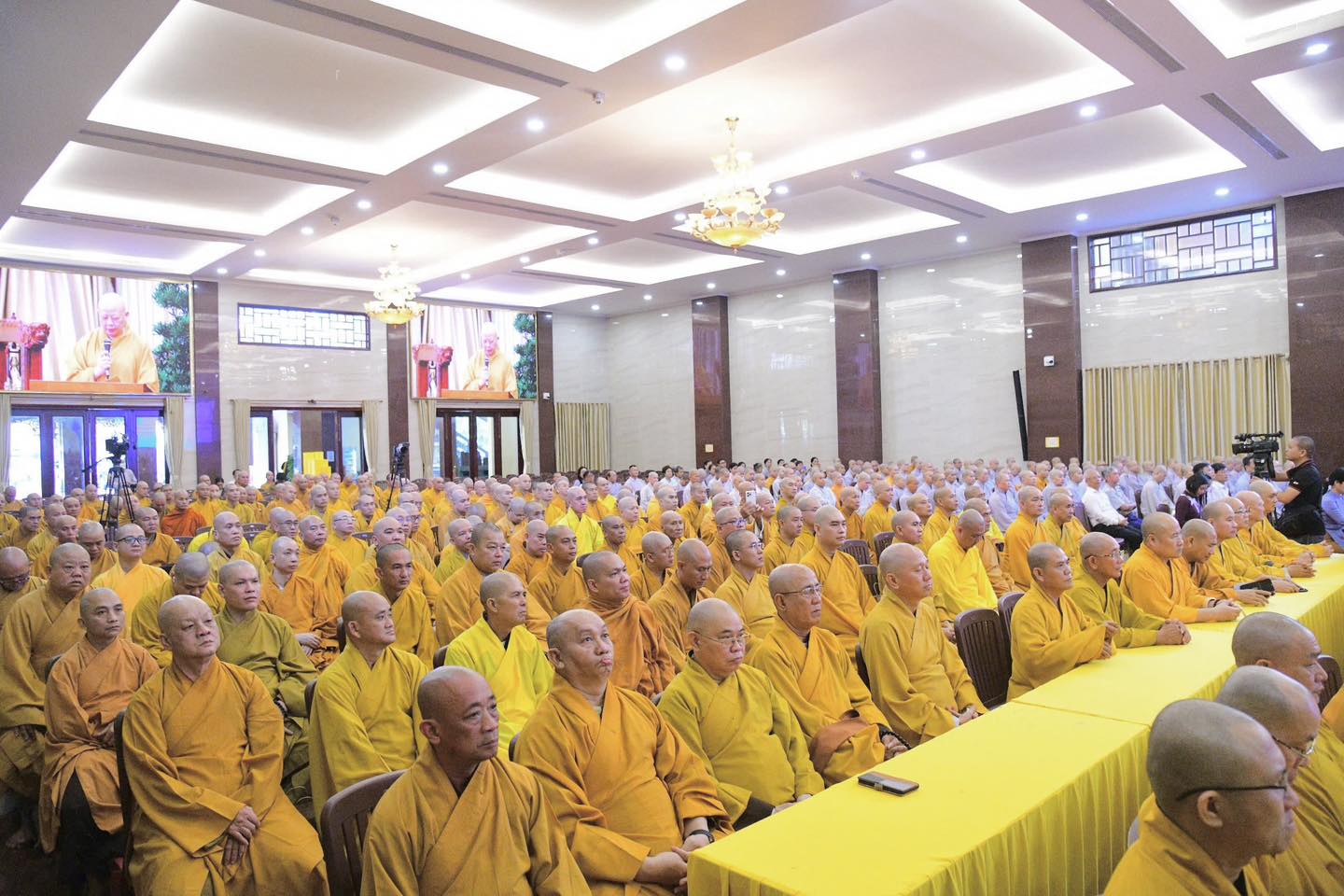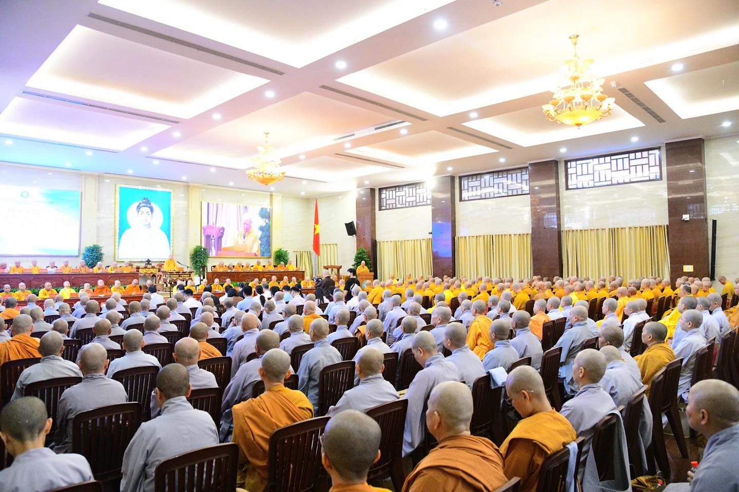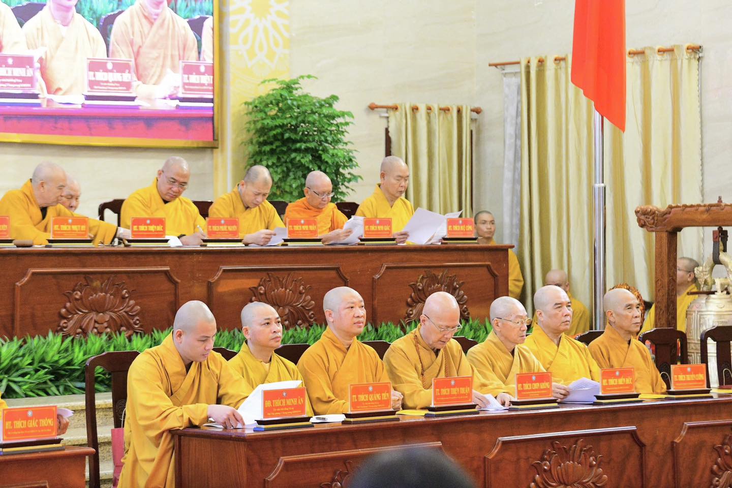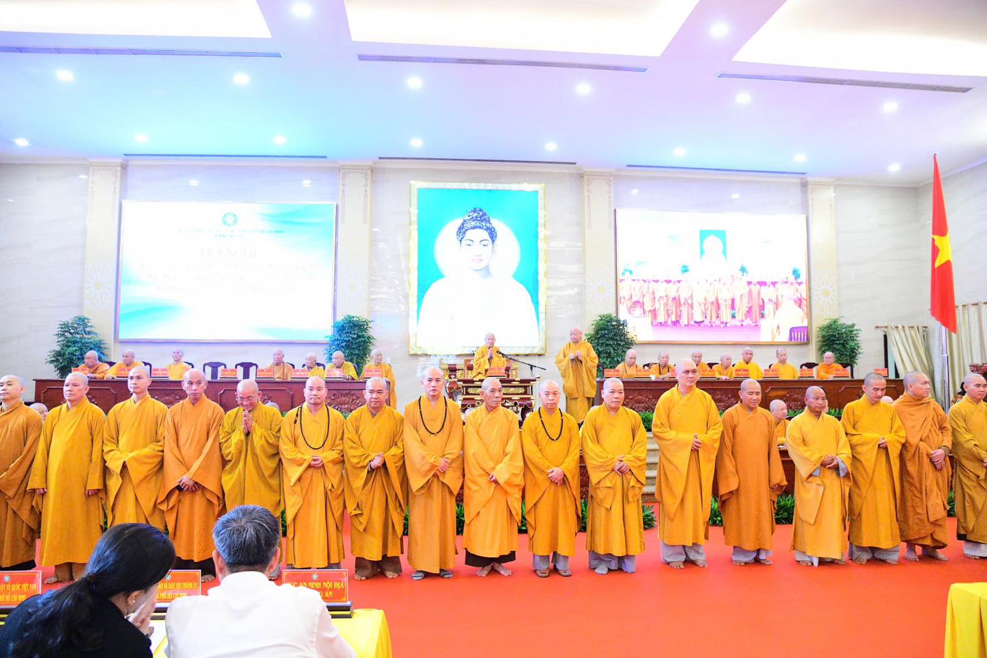 Tham dự phiên họp trang nghiêm có chư tôn đức Hội đồng Chứng minh, Hội đồng Trị sự, đại diện các ban, viện Trung ương GHPGVN, cùng chư tôn đức Ban Trị sự Phật giáo TP. Hồ Chí Minh.