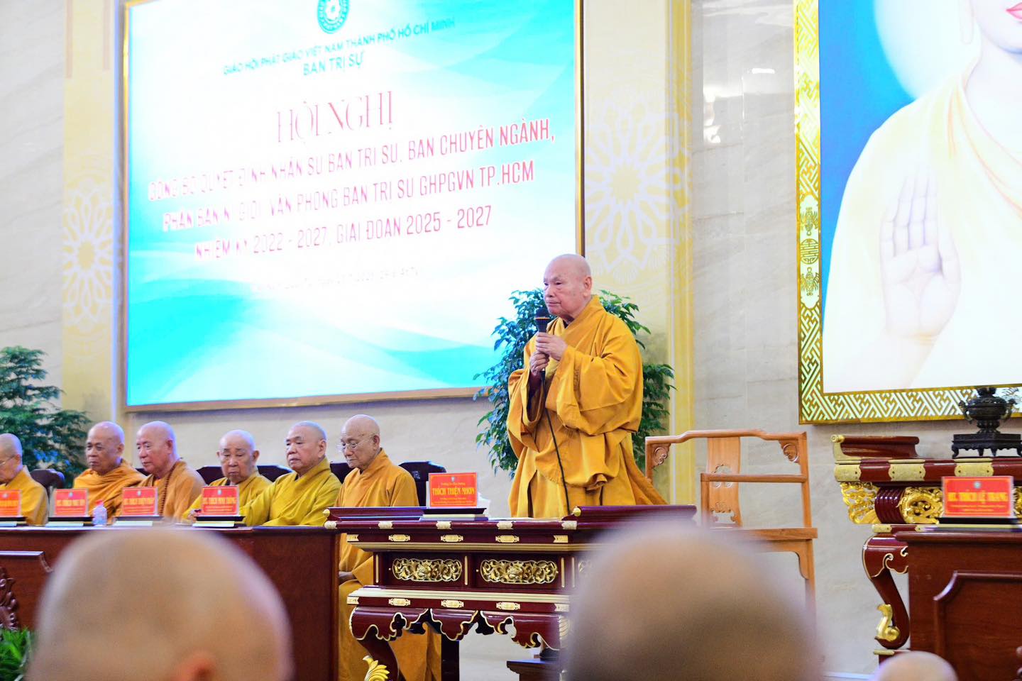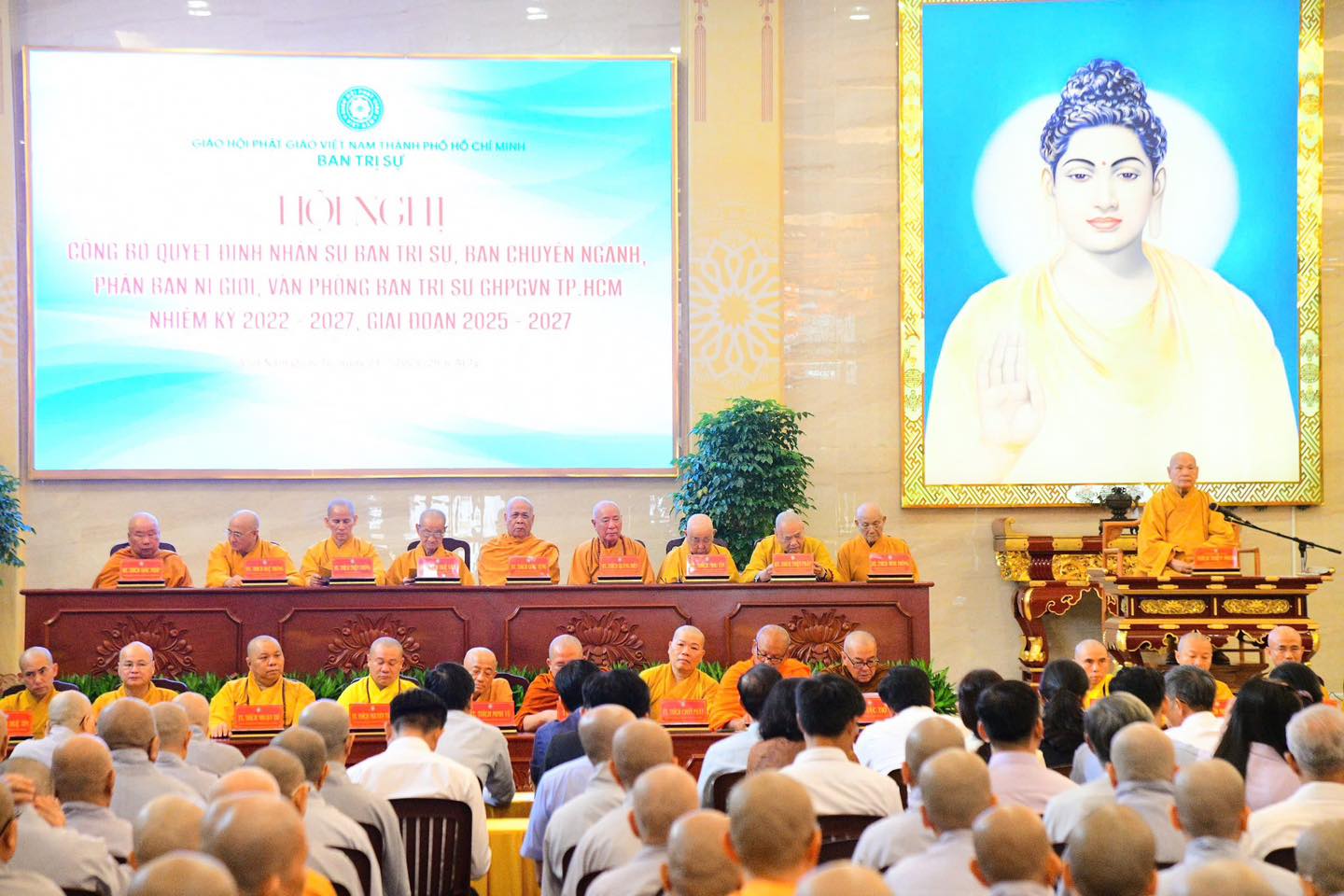 Tại buổi lễ, đại diện Trung ương Giáo hội đã chính thức công bố quyết định chuẩn y nhân sự Ban Trị sự GHPGVN TP. Hồ Chí Minh cho giai đoạn mới 2025–2027.