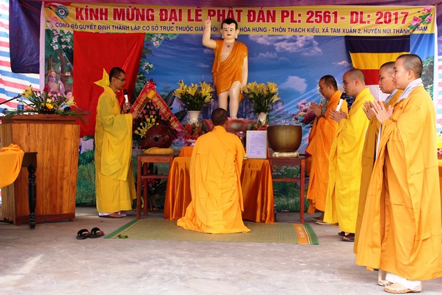 Sau phần tuyên đọc Thông điệp và Diễn văn Phật đản PL.2561. ĐĐ.Thích Quảng Hòa, Phó ban Thường trực BTS PG huyện Núi Thành đã công bố quyết định thành lập tổ chức cơ sở trực thuộc GHPGVN tỉnh Quảng Nam tại thôn Thạch Kiều, xã Tam Xuân 2, huyện Núi Thành với tên danh xưng là chùa Hòa Hưng. Trụ sở tạm mượn nhà Phật tử Nguyễn Văn Lợi (người địa phương thôn Thạch Kiều) làm nơi sinh hoạt; và công bố quyết định nhân sự đại diện tín đồ Phật giáo sinh hoạt tại thôn Thạch Kiều do Phật tử Nguyễn Văn Lợi làm trưởng ban. Quyết định do HT.Thích Thiện Duyên, Phó Chủ tịch HĐTS, Trưởng BTS PG tỉnh Quảng Nam ấn ký.