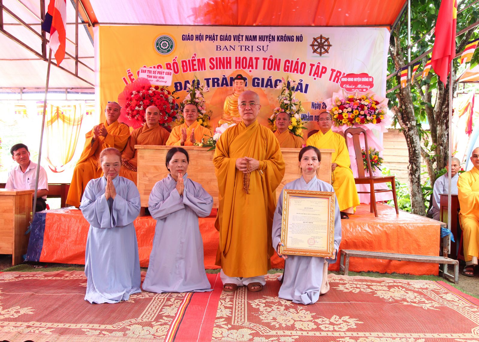 Ban Trị sự Phật giáo tỉnh và Phật giáo huyện Krông Nô rất vui mừng khi có được một điểm sinh hoạt chính thức như thế này là cả một thời gian dài với rất nhiều khó khăn và trở ngại, do đó quý vị Phật tử nơi đây phải nỗ lực hộ trì và gìn giữ tín ngưỡng Tôn giáo mình đang theo học, phải quy y Tam Bảo có lòng tin tuyệt đối với Đức Phật, mỗi người chúng ta phải hướng đến đời sống tâm linh để lan tỏa truyền thống tốt đẹp của Phật giáo đến với bà con Phật tử, cố gắng để trở thành những công dân tốt, sống có ích cho xã hội chung tay gìn giữ ngôi Đạo tràng Giác Hải phát triển hơn nữa.