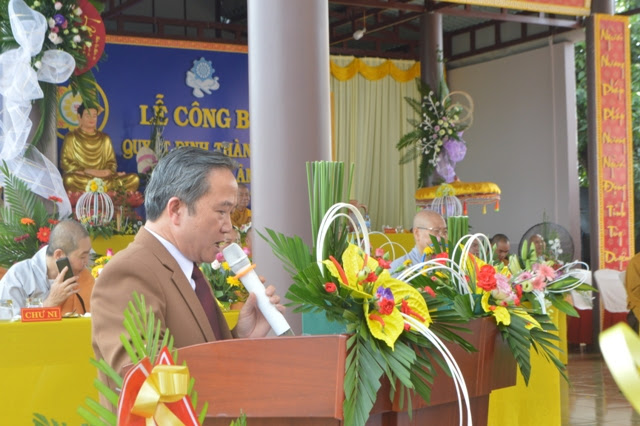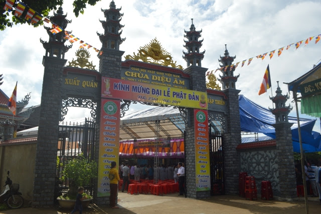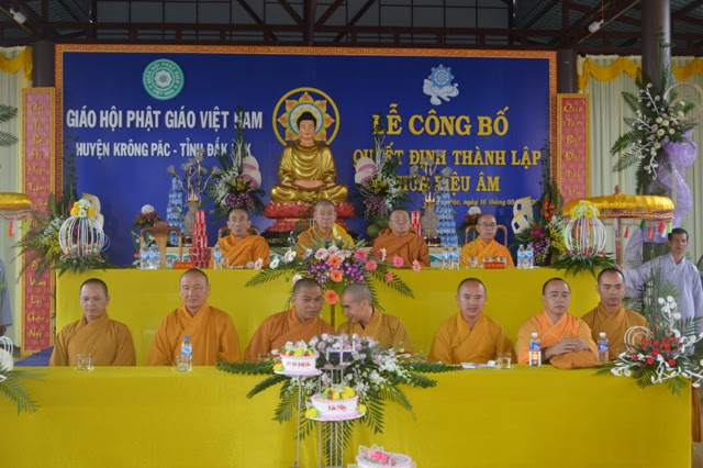 Ông Nguyễn Tấn Chức, Trưởng Ban Tôn Giáo tỉnh DakLak…”Lễ công bố thành lập Chùa Diệu Âm hôm nay là sự kiện quan trọng đối với công tác phật sự của Phật giáo huyện nhà. Tôi mong muốn rằng Chùa Diệu Amm sẽ có những đóng góp tích cực trong xây dựng nếp sống đạo đức hiền hòa cao đẹp cho con người theo phương châm “Đạo Pháp- Dân tộc- Chủ Nghĩa xã hội”. Đồng bào Phật tử giữ gìn đạo pháp, sống theo lời Phật dạy để xây dựng cuộc sống hạnh phúc, viên mãn… “
