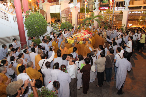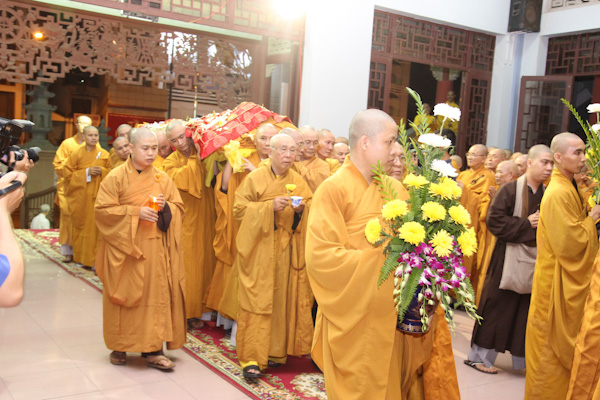 Lễ tưởng niệm được cử hành lúc 07giờ00 ngày 29 tháng 4 năm 2013 (ngày 20 tháng 3 năm Quý Tỵ), sau đó phụng tống kim quan Đại lão Hòa thượng Trà tỳ tại Đài hỏa táng Bình Hưng Hòa, xá lợi được nhập tháp trong khuôn viên Việt Nam Quốc Tự.