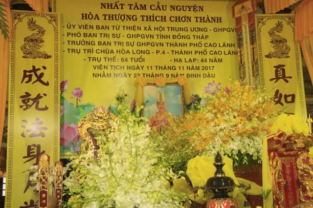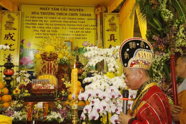 Sau khi cung thỉnh chư Tôn giáo phẩm an tọa, Thượng Toạ Thích Thiện Năng, Phó Ban thường trực BTS.GHPGVN tỉnh Đồng Tháp tóm tắt tiểu sử Cố HT. Thích Chơn Thành về thân thế, thời gian hành đạo và thời kỳ viên tịch. Thường toạ cũng tuyên lời điếu văn của Ban trị sự GHPGVN Tỉnh Đồng Tháp.