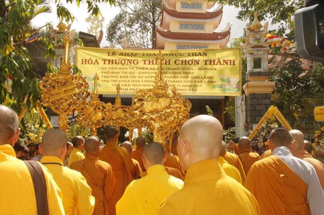 Lễ truy niệm và nhập tháp dưới sự Chứng minh: HT. Thích Thiện Phước Thông, HT. Thích Thiện Phương đồng Chứng minh BTS.GHPGVN tỉnh Đồng Tháp; TT. Thích Chơn Minh, Trưởng Ban trị sự GHPGVN tỉnh Đồng Tháp, Chư tôn đức Thường trực Ban trị sự GHPGVN Tỉnh Đồng Tháp, 12 Ban trị sự GHPGVN huyện/thị/thành phố, Tăng ni tự viện trong tỉnh và hàng trăm Phật tử xa gần về tiễn đưa Cố Hòa thượng.