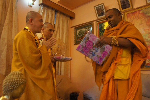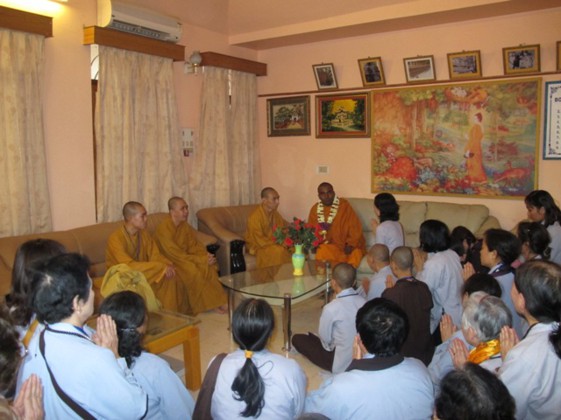 Dẫn đoàn là Thượng tọa Thích Thông Phương – Trụ trì Thiền viện Trúc Lâm Yên Tử và Trúc Lâm Phụng Hoàng (Đà Lạt) và Đại đức Thích Tâm Thuần – Trụ trì Thiền viện Trúc Lâm Sùng Phúc (Hà Nội). Tháp tùng còn có chư Tôn đức Tăng ni và 90 Phật tử.