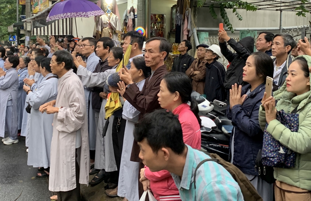 Hàng vạn Tăng Ni, Phật tử các giới đã đến tiễn đưa nhục thân của Trưởng lão Hòa thượng đi hỏa táng.