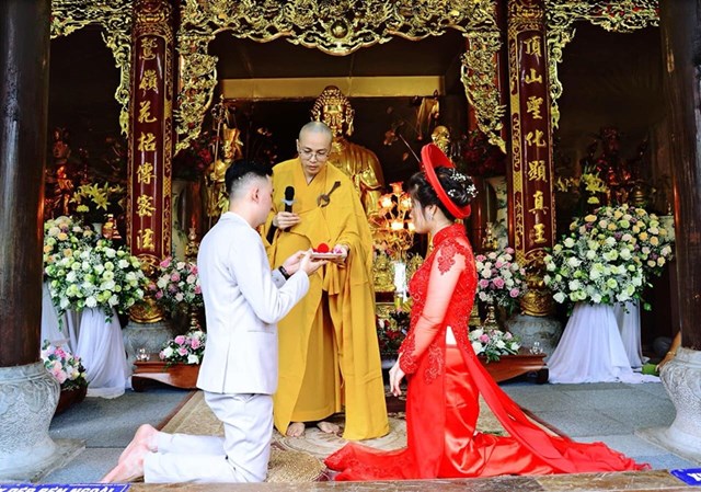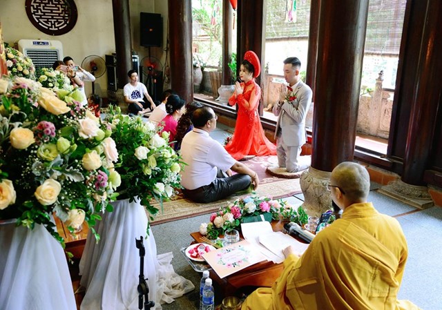 Trước sự gia hộ của mười phương Chư Phật và sự chứng minh của Chư tôn đức Tăng Ni, tân lang và tân nương đã làm lễ tạ ơn Tam Bảo, lễ dâng trà tri ân công sinh thành dưỡng dục của hai đấng sinh thành. Đồng thời, để thể hiện sự kính trọng, sự bình đẳng và sự tôn kính lẫn nhau khi đã nên vợ, thành chống, đôi bạn trẻ đã lễ lạy nhau thông qua nghi lễ “ Lễ Bình Đẳng”.