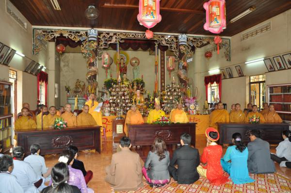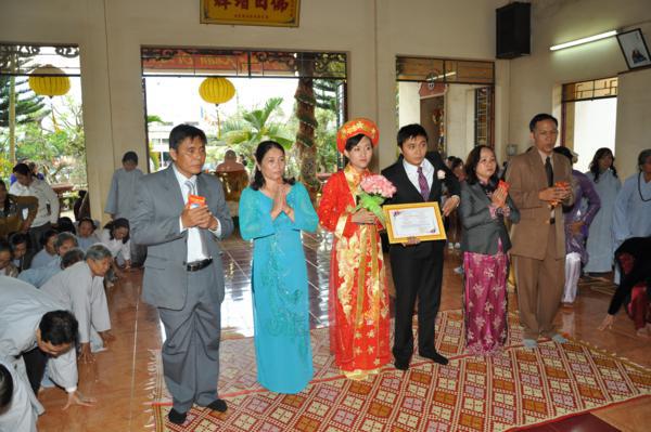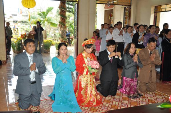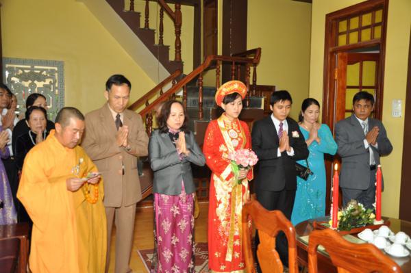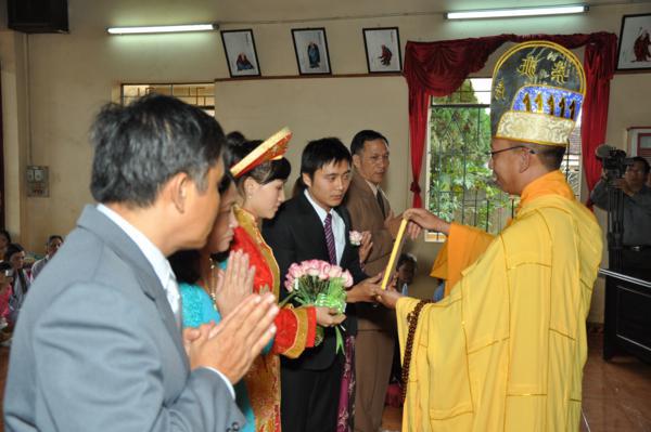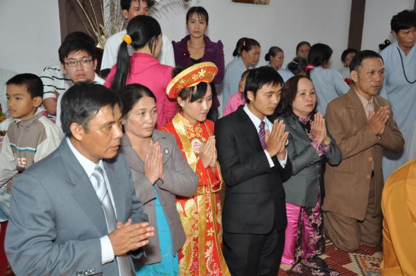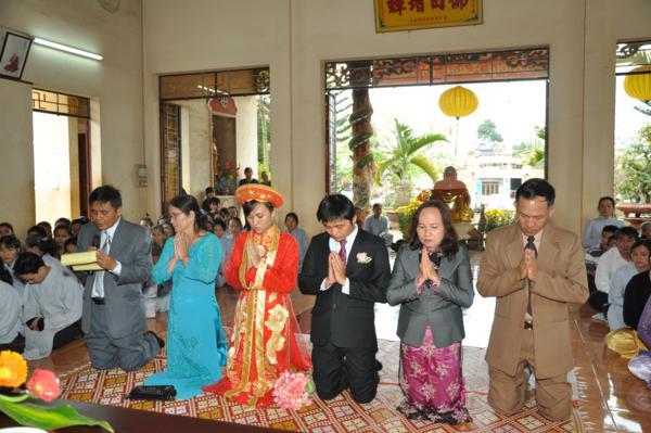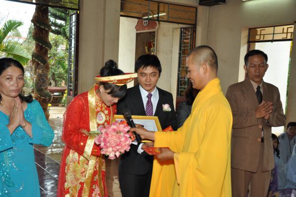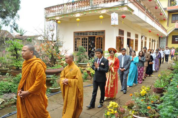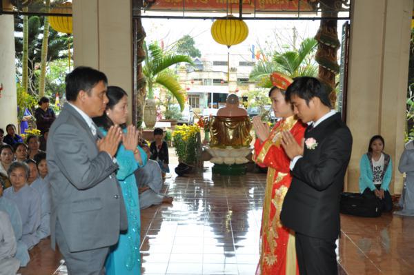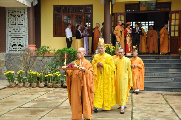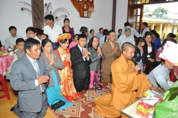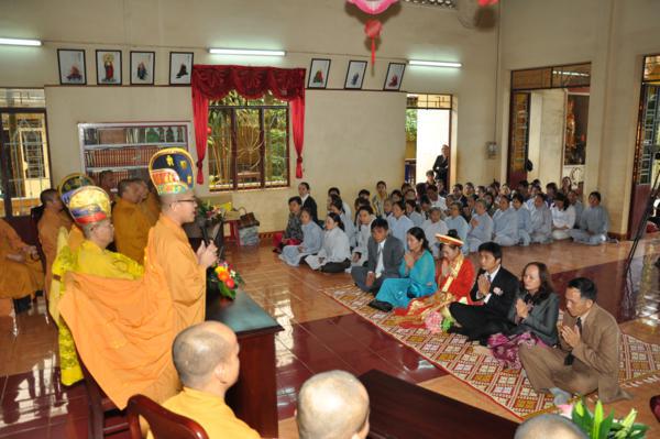 Đến Chứng minh Lễ hằng thuận co Chư Tôn đức; Thượng tọa Thích Châu Quang – Trưởng ban Trị sự tỉnh Đăk Lăk – Chứng minh BTS tỉnh Đăk Nông, Thượng tọa Thích Quảng Tuấn – Trưởng ban Trị sự tỉnh Đăk Nông, Đ.Đ Thích Quảng Hiền – Phó ban Thường trực BTS PG tỉnh Đăk Nông kiêm Trưởng ban Hướng dẫn Phật tử tỉnh, cùng Chư Tôn đức Trụ trì các Chùa trong tỉnh đến chứng minh cầu nguyện và chúc phúc cho đôi ban trẻ.