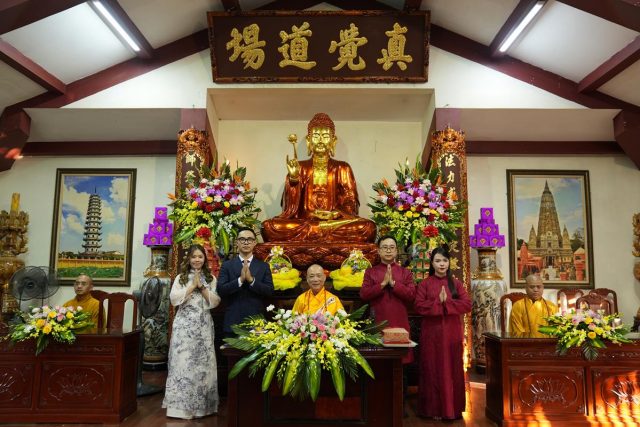 Cuối buổi lễ, chư tôn đức chứng minh và toàn thể đại chúng đã thành kính làm lễ niêm hương bạch Phật, chúc phúc cho hai đôi trẻ “trăm năm tình viên mãn, bạc đầu nghĩa phu thê”.