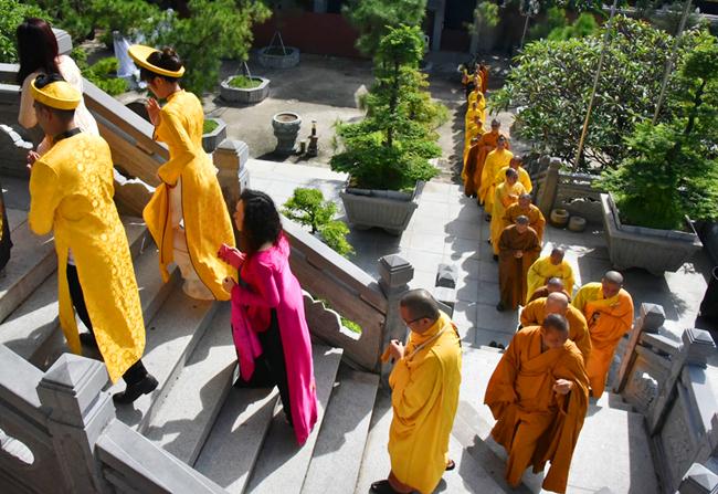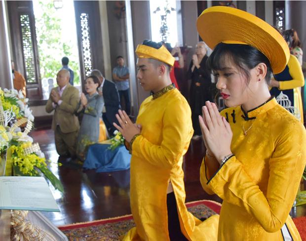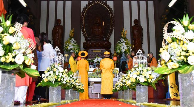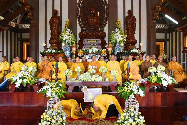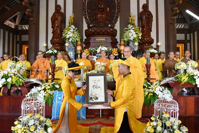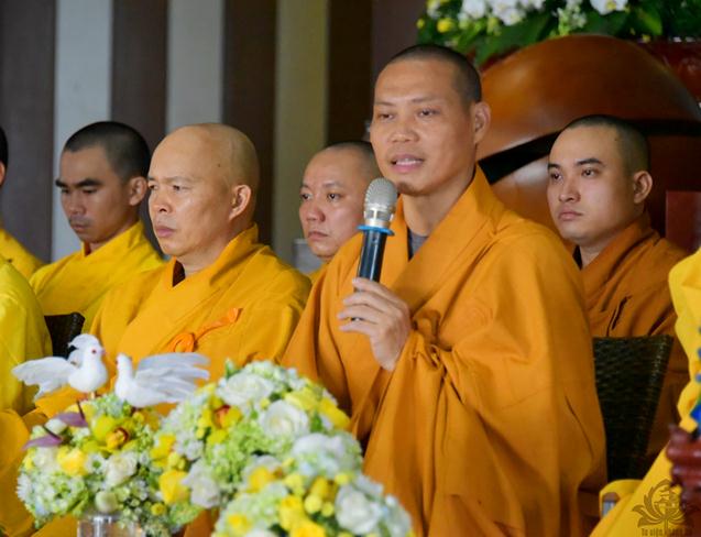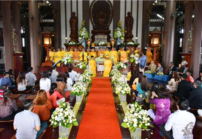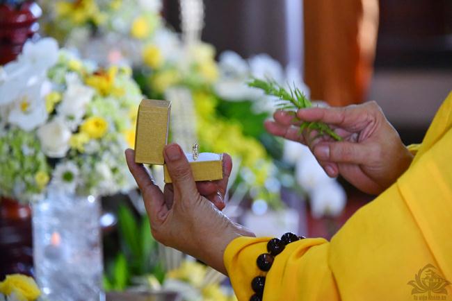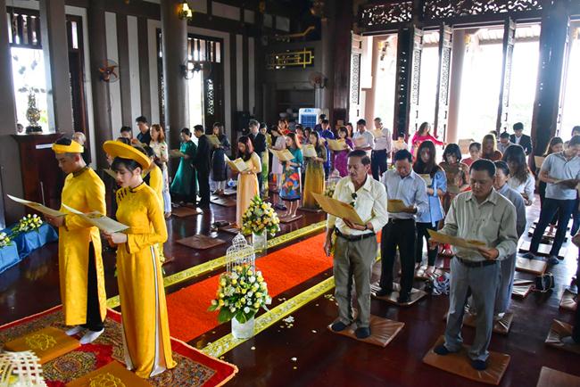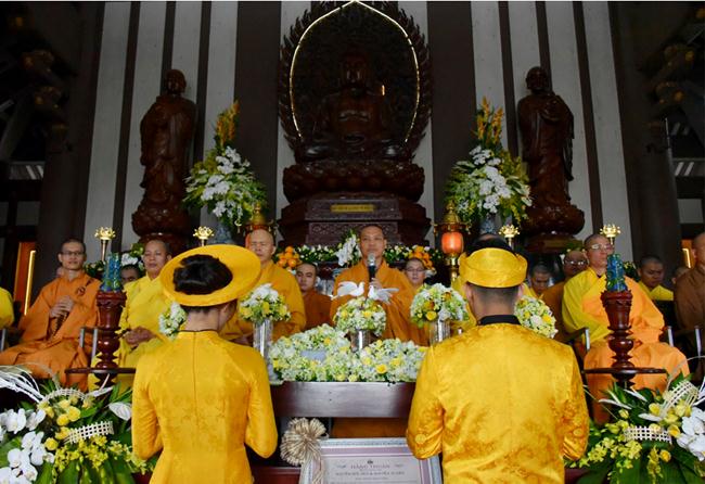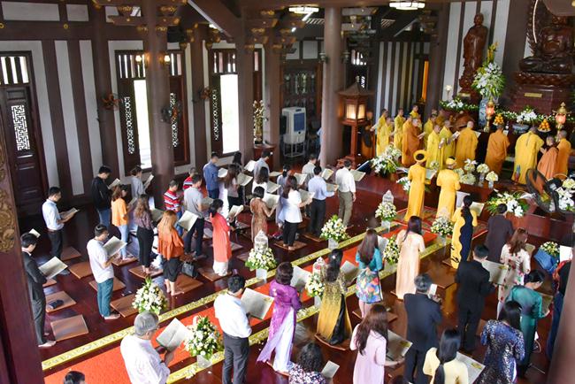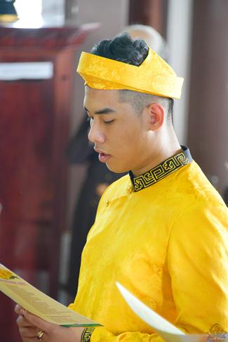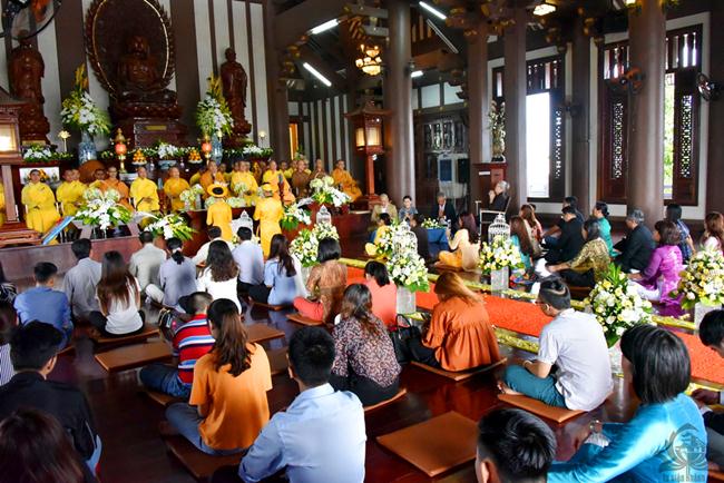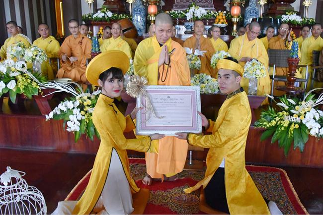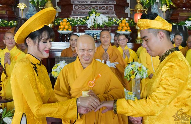 Sau sự chia sẻ của Thượng tọa Viện chủ, TT. Thích Trí Thường cử hành nghi thức trao nhẫn, TT Thích Minh Không chúc phúc cho đôi bạn trẻ. Đại diện phụ mẫu hai bên gia đình đã đối trước Tam Bảo dâng lời niệm ân và gửi lời chúc phúc đến hai con.