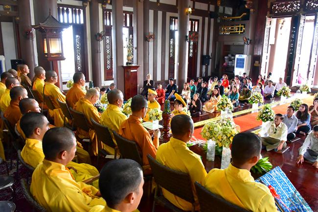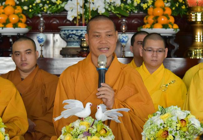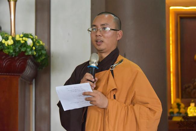Sau thời trì tụng kinh Phước Đức, Thượng tọa Viện chủ bổn viện thay mặt chư Tăng có đôi lời nhắn nhủ đến đôi bạn trẻ trong tinh thần của Giáo pháp. Thầy chia sẻ về 5 phẩm chất cần có để đời sống vợ chồng được hạnh phúc, thuận hòa.