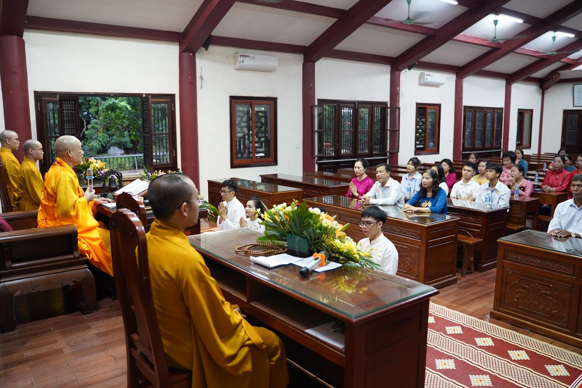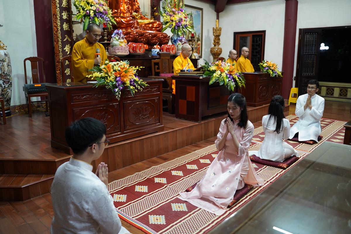 Trước khi cử hành nghi lễ hằng thuận, hai đôi bạn trẻ đã được Hòa thượng trụ trì và chư Tăng tác pháp quy y Tam Bảo và trao truyền Ngũ Giới để làm kim chỉ nam cho cuộc sống hiện tại. Hai đôi tân lang tân nương đã được lắng nghe Hòa thượng trụ trì Thích Bảo Nghiêm giảng giải về đạo nghĩa vợ chồng trong kinh Thiện Sinh. Hòa thượng khuyến tấn hai đôi tân lang, tân nương phải sống trọn vẹn bổn phận làm vợ và làm chồng, làm dâu hiền, rể thảo cùng xây dựng hạnh phúc gia đình.
