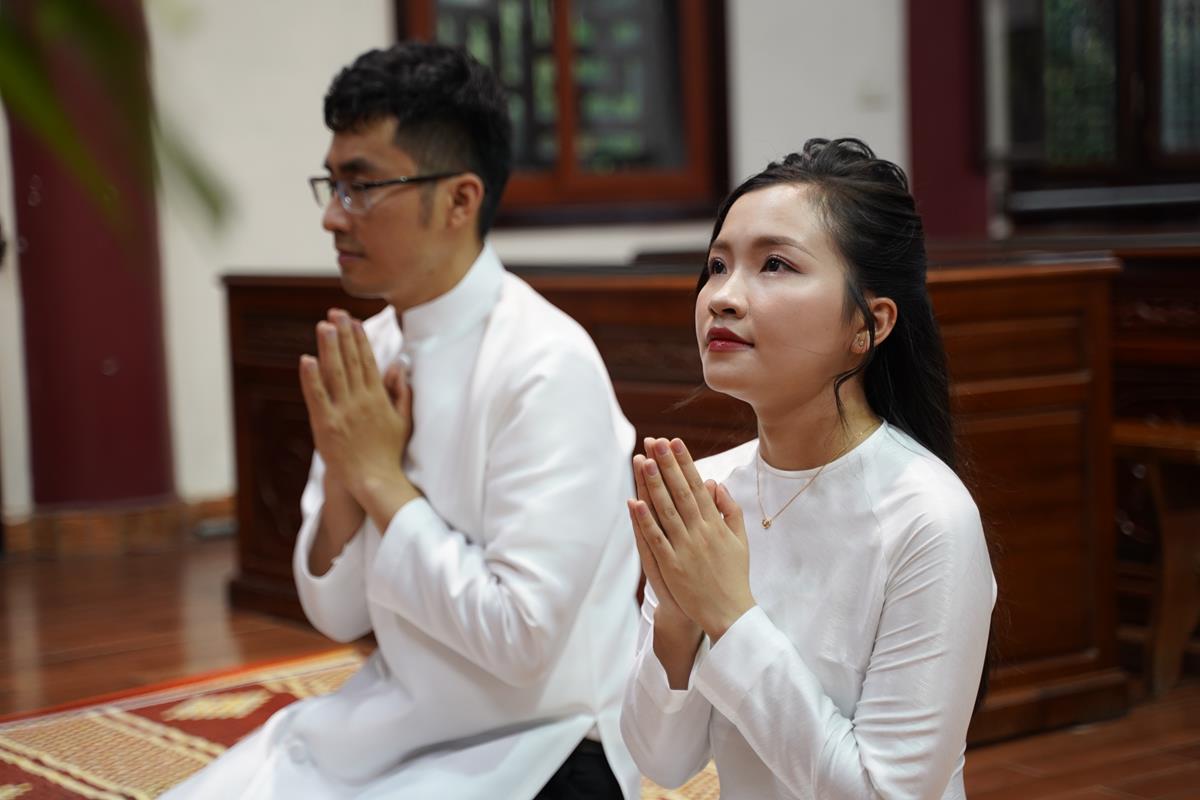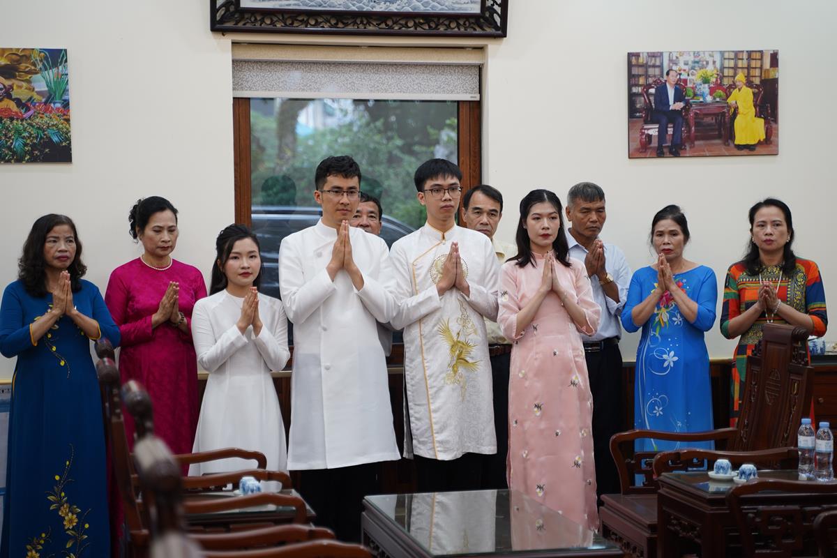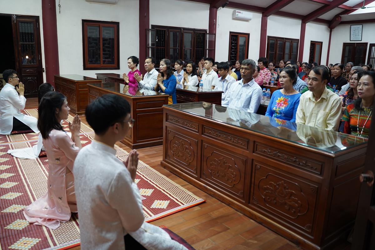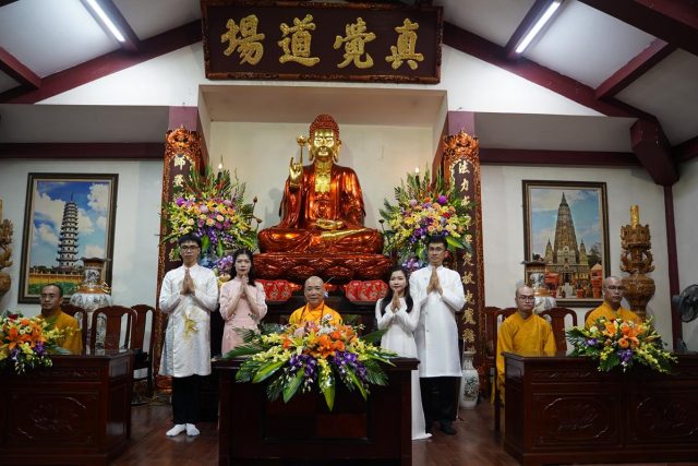 Vì lẽ đó, chiều ngày 28/10/2023, nhằm ngày 14/09/Quý Mão, tại chùa Bằng – Linh Tiên Tự (số 63 phố Bằng Liệt, phường Hoàng Liệt, quận Hoàng Mai, Hà Nội) đã trang trọng diễn ra lễ hằng thuận của hai đôi bạn trẻ: Vũ Tuấn Đạt – pháp danh Minh Đức và Lê Phương Thảo – pháp danh Diệu Hương; Hà Trọng Nghĩa – pháp danh Minh Nhân và Nguyễn Thị Mai – pháp danh Diệu Tuệ.