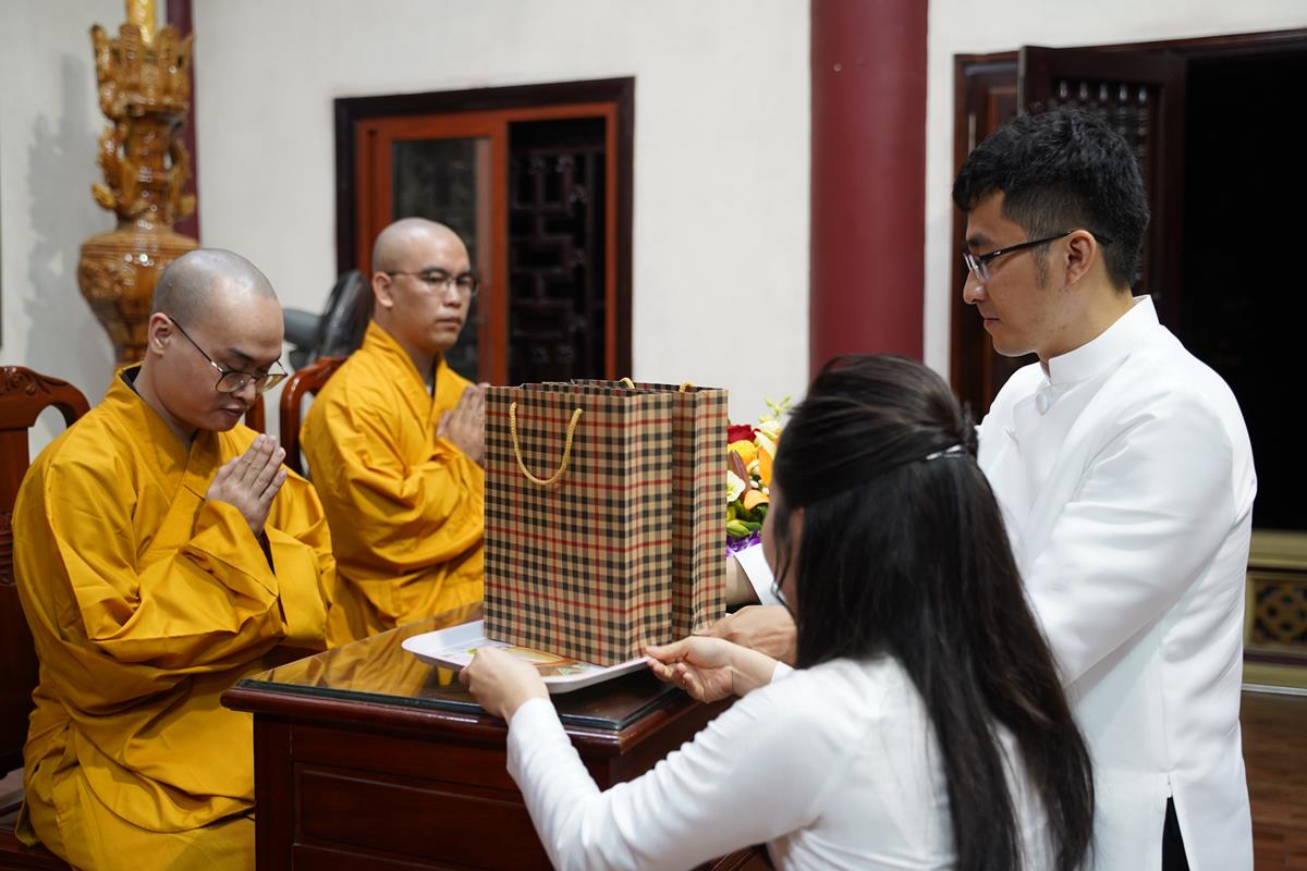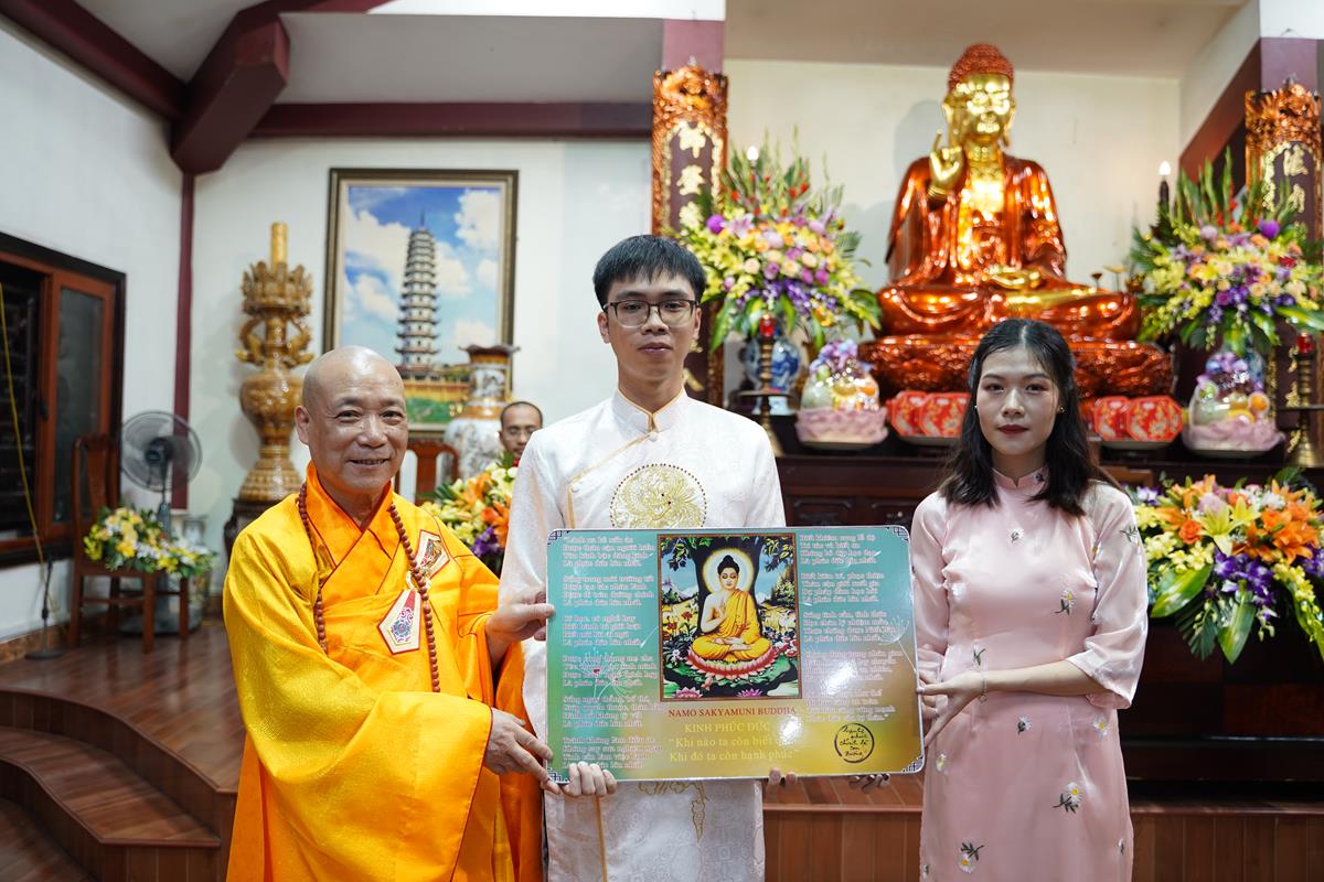 Dưới sự gia hộ của mười phương chư Phật, sự chứng minh của Hòa thượng trụ trì Thích Bảo Nghiêm và chư tôn đức Tăng bản tự cùng sự tham dự của đại diện họ hàng hai bên gia đình, hai đôi bạn trẻ đã kết duyên vợ chồng.