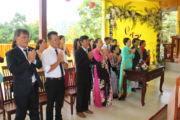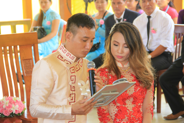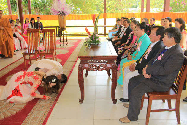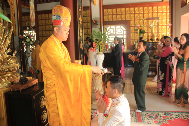 ĐĐ. Thích Pháp Châu – Phó thư ký kiêm Phó văn phòng BTS GHPGVN Tp Đà Nẵng, Trú trì chùa Huệ Quang cùng Chư Tăng tại bổn tự đã quan lâm chứng minh và chủ trì nghi lễ hằng thuận cho đôi bạn trẻ.