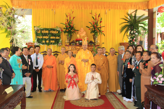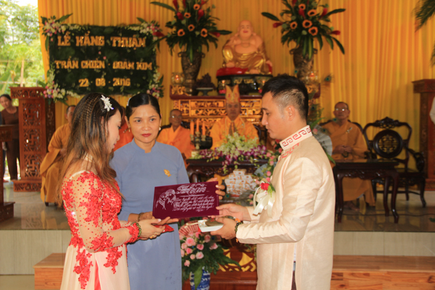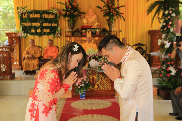 Với ý nghĩa cao đẹp và thiêng liêng đó, ngày 22/8/2016 (20/7/Bính Thân), tại chùa Huệ Quang – P. Hòa Hải, Q. Ngũ Hành Sơn, Tp Đà Nẵng đã tổ chức lễ hằng thuận cho đôi Phật tử trẻ chú rể: Lê Trần Đức Chiến – Pháp danh Đức Phúc và cô dâu: Đoàn Kim – Pháp danh Đức Huệ.
