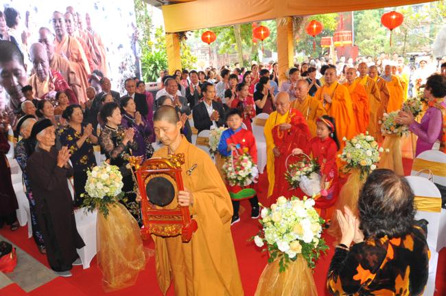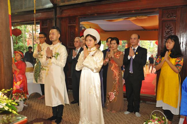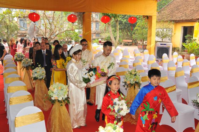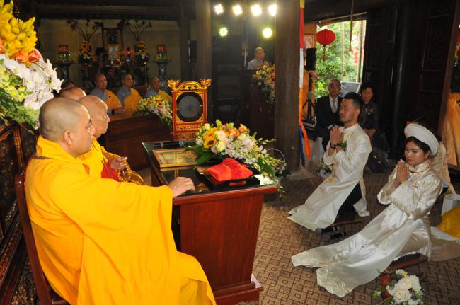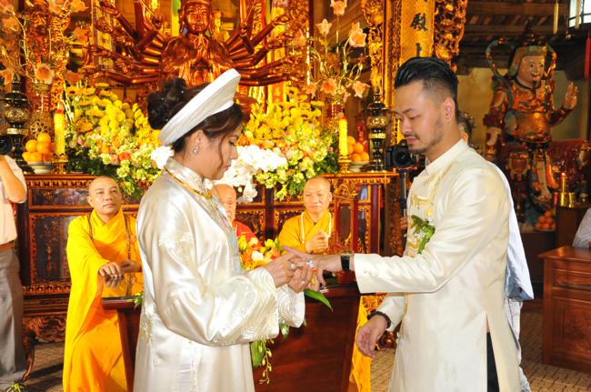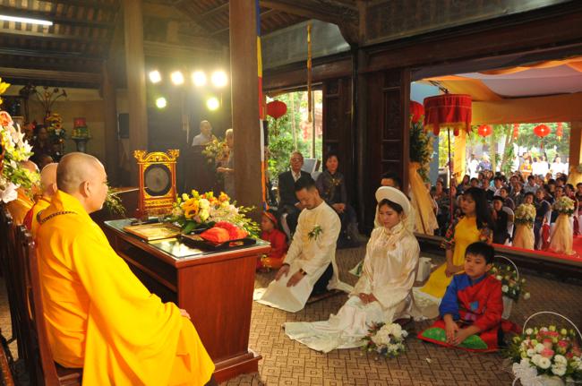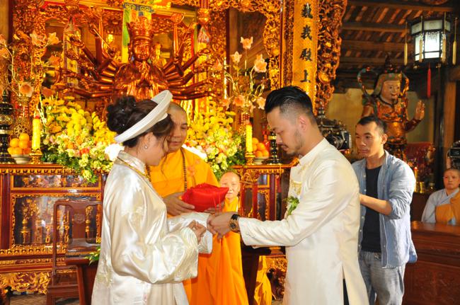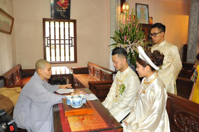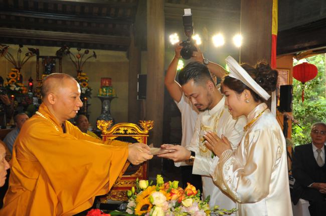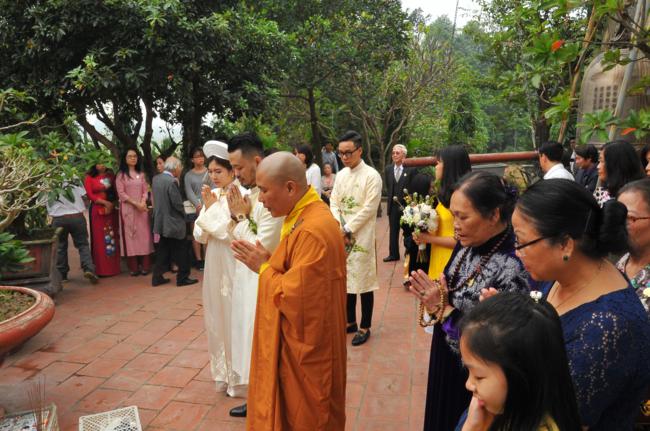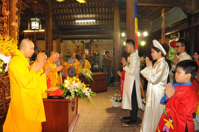 Dưới sự gia hộ của mười phương chư Phật, sự chứng minh của Hòa thượng Thích Thanh Đàm – Ủy viên thường trực HĐCM GHPGVN; Thượng tọa Thích Chiếu Tuệ – Ủy viên HĐTS, Phó thư ký kiêm Chánh văn phòng Ban hoằng pháp TW, Trưởng Ban hoằng pháp GHPGVN Thành phố Hà Nội, trụ trì chùa Vạn Phúc; Thượng tọa Thích Thanh Trung – Ủy viên BTS GHPGVN thành phố Hà Nội, Trưởng BTS GHPGVN quận Long Biên; Đại đức Thích Thanh Hòa – Ủy viên BTS GHPGVN thành phố Hà Nội, Chánh thư ký BTS GHPGVN huyện Đông Anh và chư tôn đức Tăng Ni trụ trì các chùa trên địa bàn huyện Sóc Sơn, sự tham dự của họ hàng hai bên gia đình, đôi bạn trẻ đã kết duyên vợ chồng.