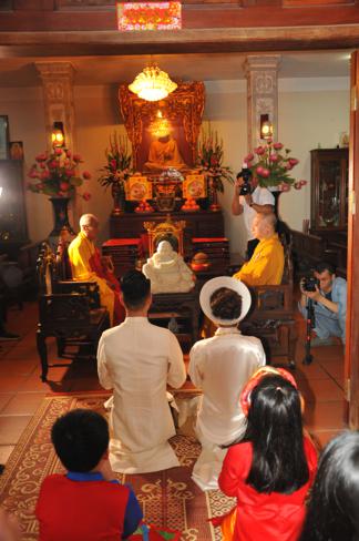 Sau những lời sách tấn đầy ý nghĩa, hai bạn trẻ đã phát nguyện trước Tam Bảo và hiện tiền chư Tôn đức Tăng Ni sẽ cố gắng tinh tấn thực hành những lời dạy đó để có thể sống đúng nghĩa là một người Phật tử tại gia, một người con hiếu thảo, một người vợ – người chồng đúng mực.