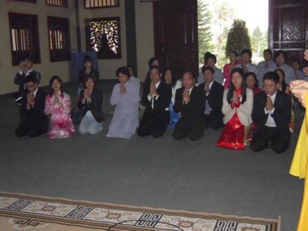 Sau buổi lễ cầu nguyện trước Tam Bảo hết sức trang nghiêm, các bạn đã được nghe lời huấn thị của chư Tăng cũng như lời dạy bảo của đai diện hai họ, các cô dâu chú rễ đã thành tâm dâng lời phát nguyện trước Tam Bảo.