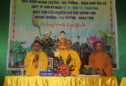 Tại buổi lễ, H.Tr Nguyễn Thị Thu Thủy, Thư ký Ban huynh trưởng TP.Tam Kỳ đọc lời tưởng niệm cho biết lễ tưởng niệm, hiệp kỵ GĐPT thành phố được diễn ra hằng năm như một lời tri ân sâu sắc của thế hệ Phật tử hôm nay đối với những công đức, những hy sinh to lớn trong sự nghiệp gìn giữ và phát triển đạo pháp, cũng như trong công cuộc đấu tranh bảo vệ cho màu lam luôn rực sáng mà các huynh trưởng, gia trưởng, đoàn sinh đã ngã xuống.