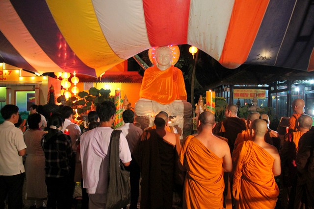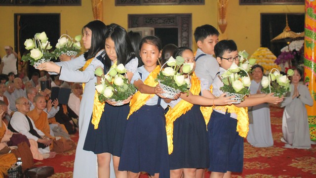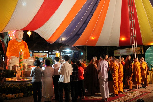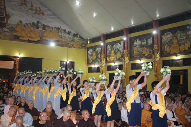 Đứng trước Phật đài uy linh, toàn thể chúng con một lòng thành kính dâng lên ngọn đèn thanh cao, cầu nguyện quốc thái dân an, mưa thuận gió hòa, chúng sinh an lành hạnh phúc và luôn cầu nguyện Phật Pháp trường tồn. Tâm niệm mỗi ngọn cúng dường trong đêm rằm tháng mười, mãi là ngọn đèn Trí Tuệ luôn soi sáng cho chúng con biết tỉnh thức trong Chánh Niệm.