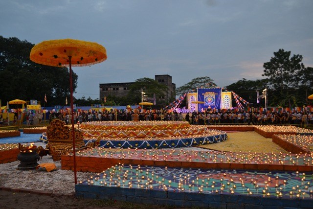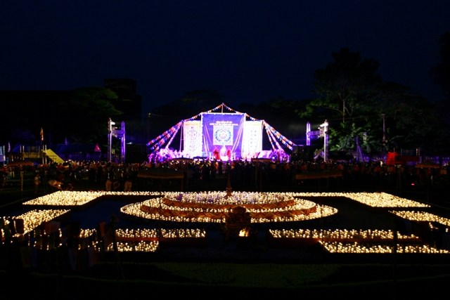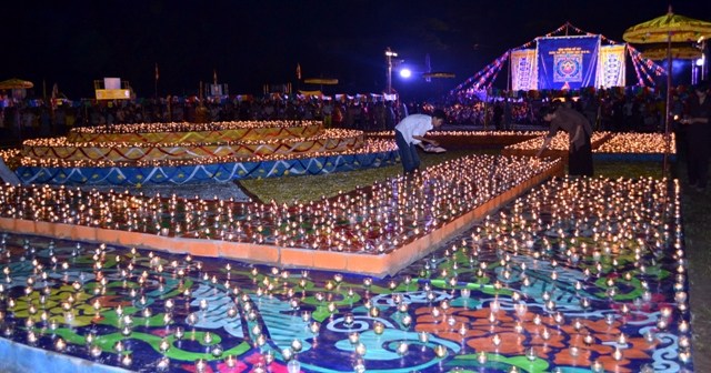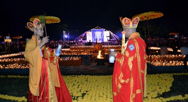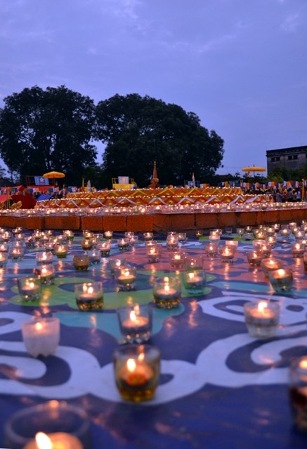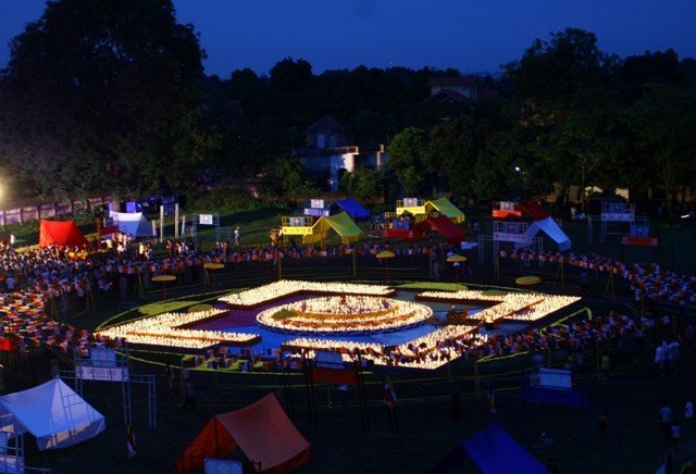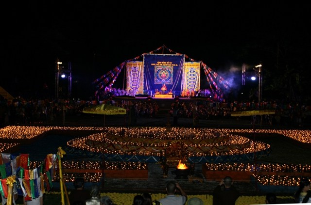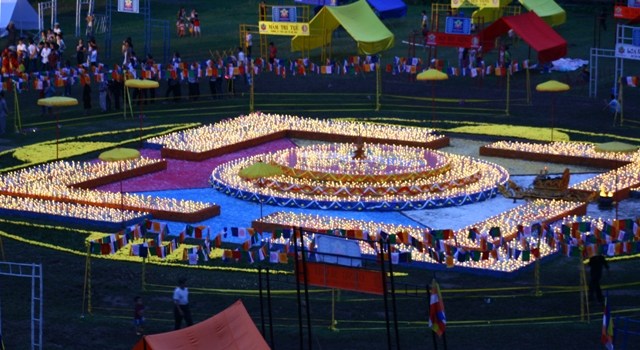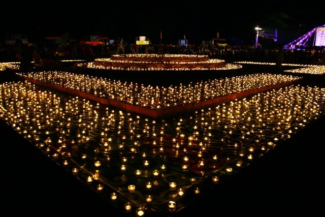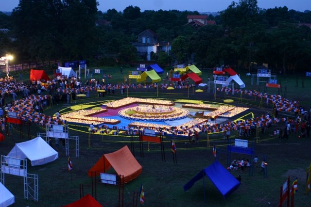 Tại khu vực Mandala, 12.000 ngọn nến đã được 64 Thiện nguyện viên là thanh niên Phật tử thắp lên, làm khuôn viên Hội Trại tràn ngập ánh sáng hiểu biết và yêu thương. Ánh nến lung linh như muôn triệu vì sao lấp lánh