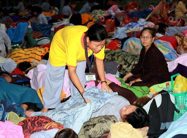 Khách viếng chùa thìấm lòngvìtừng ly nước, hộp cơm, tấm chăn, kể cả ánh mắt trìu mến, nụ cười yêu thươngmà họ được trao tặng một cách trân trọng. Còn các tình nguyện viênthì ngập vui sướng ngập lòng khi cúi mìnhphụng sựtha nhân. Giữa cuộc đời này, có lẽ với nhiều người trong số họ, đó là chút hạnh phúc hiếm hoi.