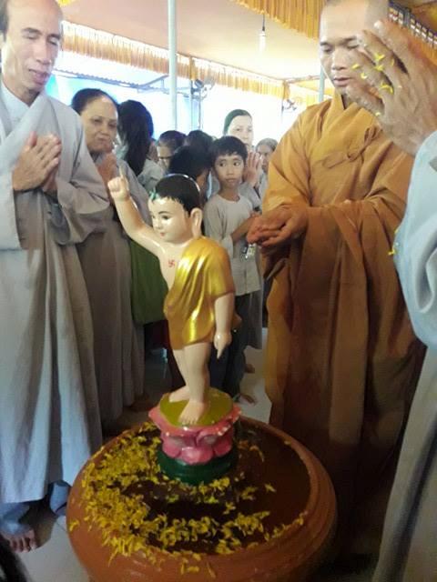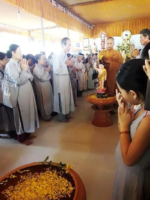 Buổi lễ diễn ra một cách trang nghiêm dưới sự hướng dẫn của ĐĐ.Thích Nhuận Tánh, Phó BTS PG huyện Bắc Trà My cùng chư tôn đức trong chùa. Sau nghi thức niêm hương bạch Phật, sái tịnh, những giọt nước pha trộn mùi hương, những cánh hoa cúc vàng được chư tôn đức rưới lên tượng đức Phật đản sanh đầu tiên sau đó được lần lượt từng người thực hiện theo một cách tôn trọng và cung kính.