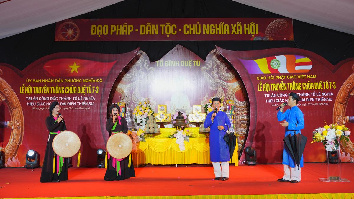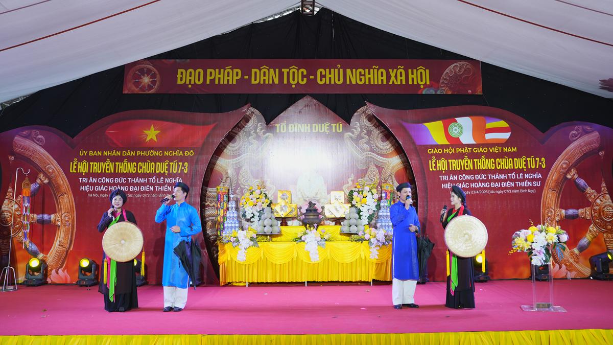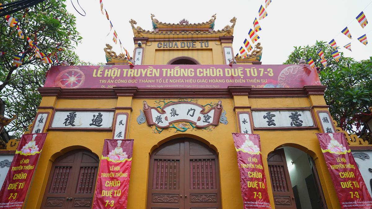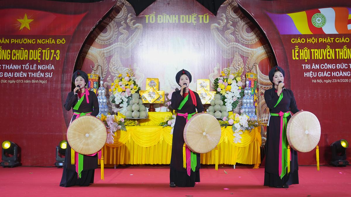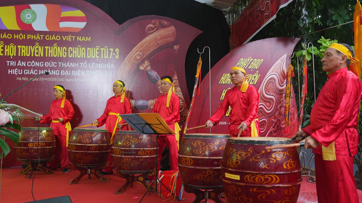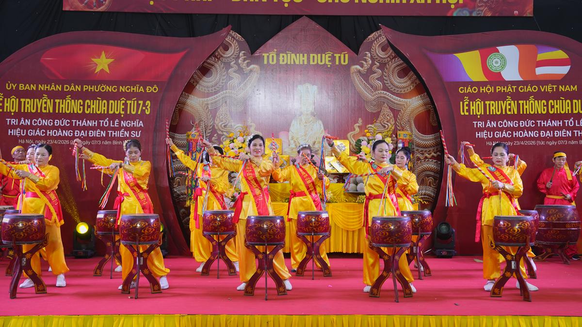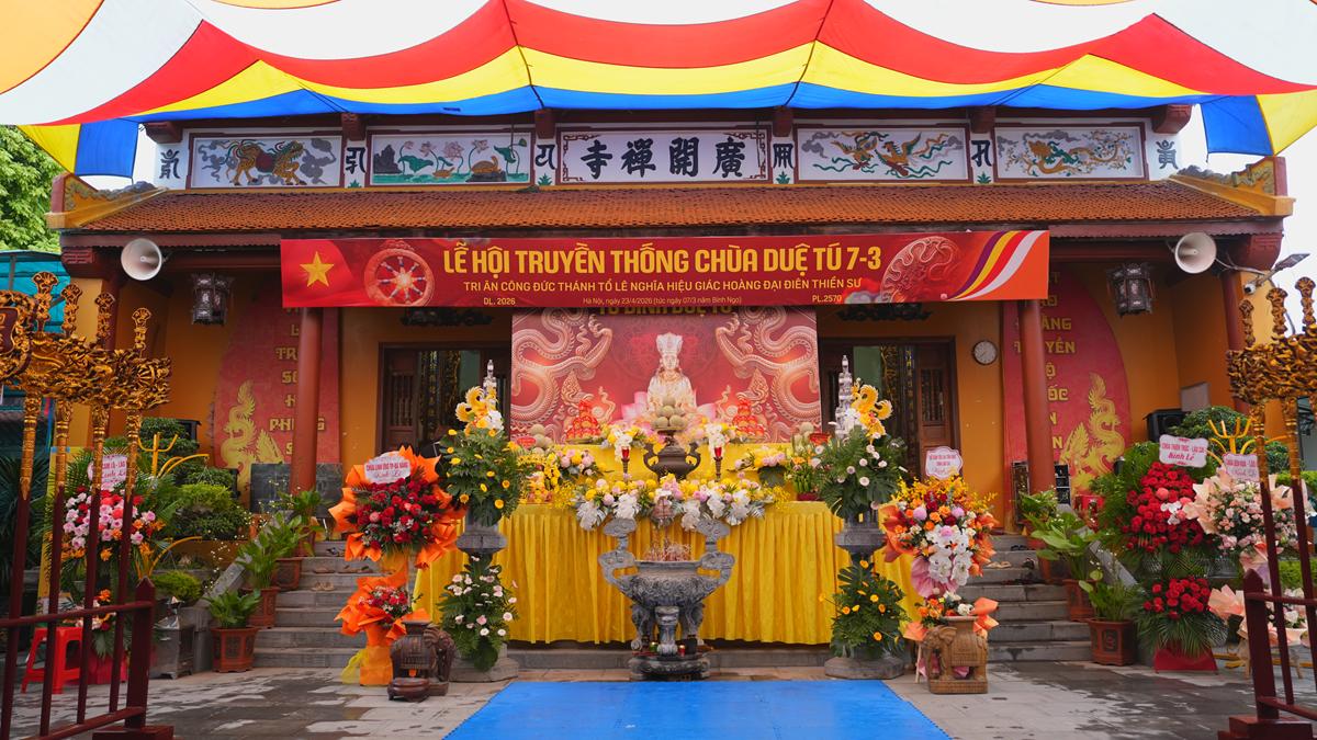 Sáng ngày 23/4/2026 (nhằm ngày mùng 7 tháng 3 năm Bính Ngọ), trong không khí trang nghiêm và thanh tịnh, lễ hội truyền thống chùa Duệ Tú (Quảng Khai Thiền tự, phường Quan Hoa, TP. Hà Nội) đã long trọng diễn ra, đồng thời tưởng niệm và tri ân công đức sâu dày của Thiền sư Lê Nghĩa, hiệu Giác Hoàng Đại Điên – bậc danh tăng đã góp phần làm rạng danh Phật giáo thời Lý, để lại dấu ấn sâu đậm trong dòng chảy lịch sử dân tộc.