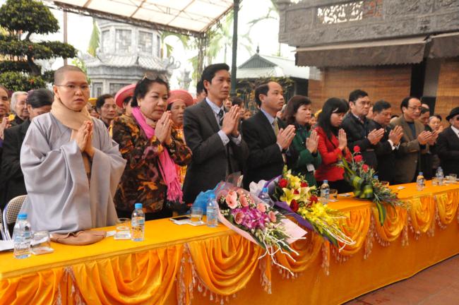 Về phía chính quyền có: Ông Nguyễn Văn Thắng – Chủ tịch UBND phường Thượng Thanh; Bà Nguyễn Thị Hồng – Phó chủ tịch UBND phường Thượng Thanh; Ông Nguyễn Văn Lực – Phó chủ tịch UBND phường Thượng Thanh; Ông Nguyễn Văn Thắng – Chủ tịch Ủy ban Mặt trận Tổ Quốc phường Thượng Thanh cùng các vị lãnh đạo đại diện cho HĐND, UBND, Ủy ban Mặt trận Tổ Quốc phường Thượng Thanh và lãnh đạo chính quyền của làng Thượng Cát và Thái Bình, cùng sự tham dự của đông đảo nhân dân Phật tử.