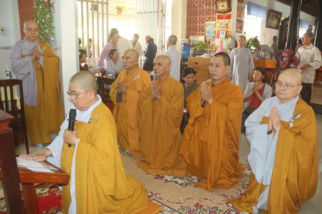 Tại buổi lễ, trong không khí trang nghiêm, bồi hồi xúc động và lắng đọng tâm tư, Chư tôn đức thường trực BTS GHPGVN tỉnh Bình Dương và CTĐ Tăng Ni trong tỉnh Bình Dương đã đến trước giác linh cố Đại lão Hòa thượng Thích Huệ Tâm đồng dâng lên nén hương tưởng niệm với lòng thành tâm nguyện cầu Giác linh cố Hòa thượng an nhiên nơi miền lạc cảnh.